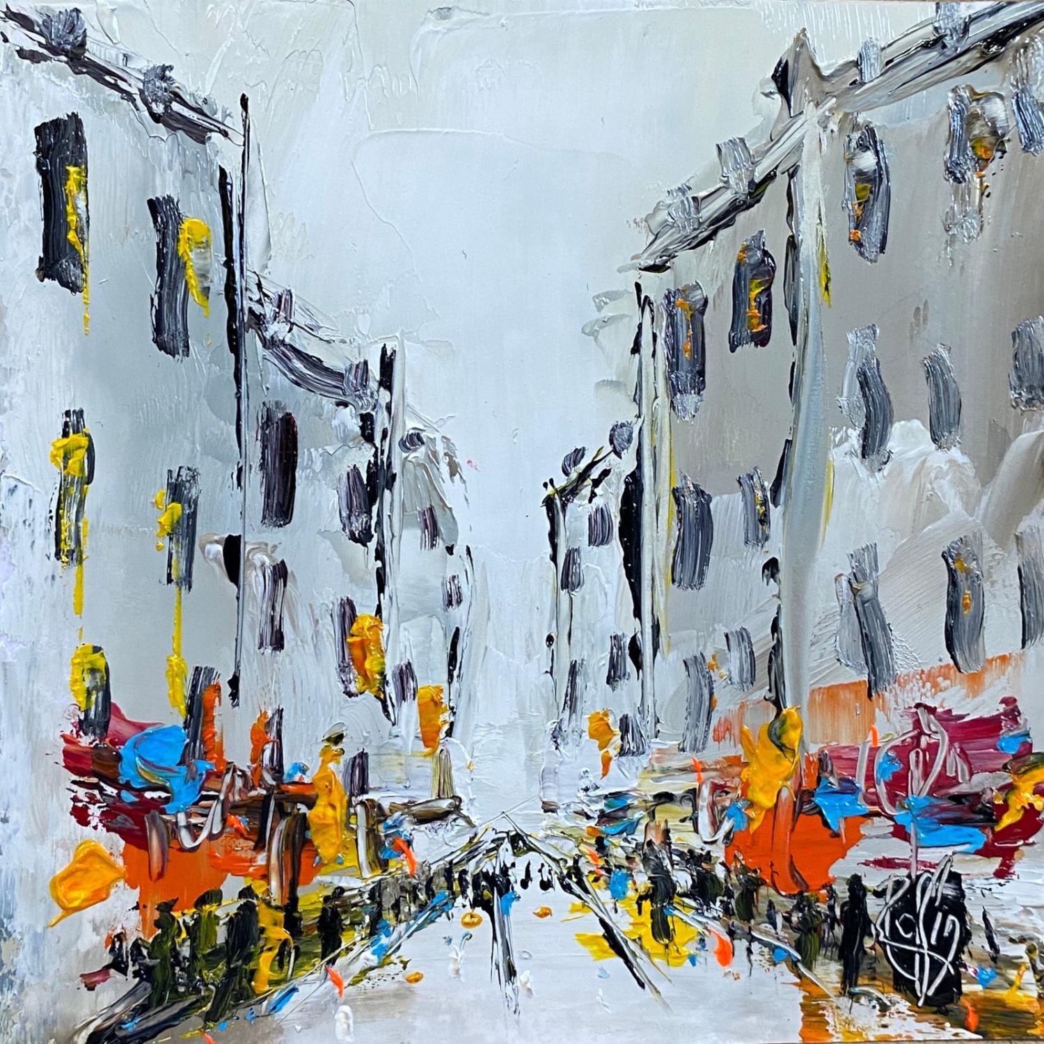 This unique and original contemporary artwork "Rue commerçante" on the subject of Urban has been created by the contemporary artist Raffin Christian.