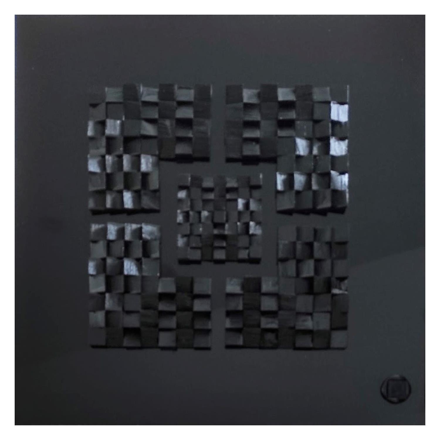 The artist used Acrylic, Wood, Gluing media on Dibon to create this Abstract, Small size painting.