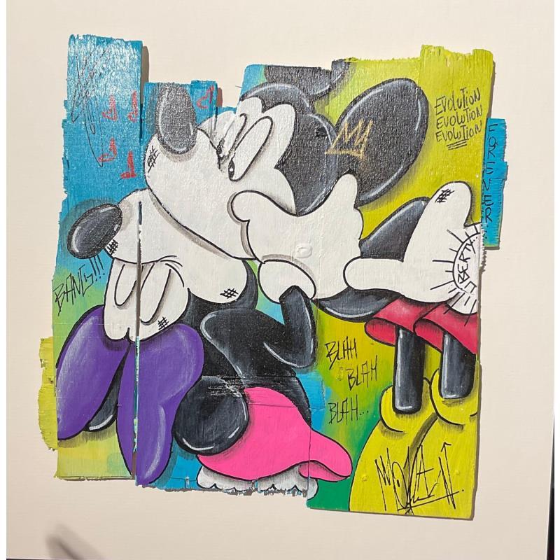 This unique and original contemporary artwork "Amour" on the subject of Pop icons has been created by the contemporary artist Molla Nathalie .