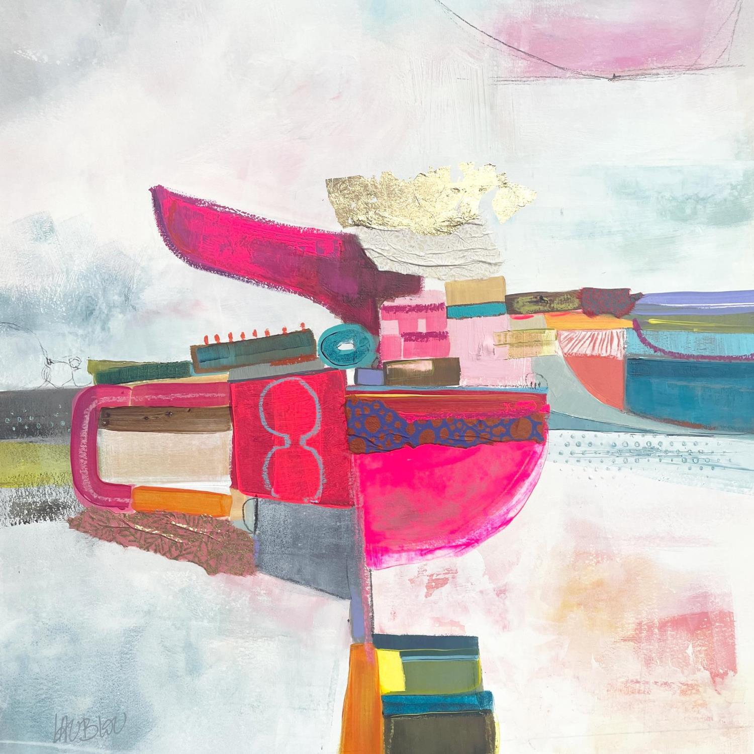 The artist used Acrylic, Gluing, Gold leaf, Pastel media on Cardboard to create this Abstract, Small size painting.