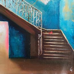 The French artist Virginie Mézan de Malartic qualifies her creation as "painting of beings" as the contrasts modelled on man occupy an important position. Exploring natural or artificial light, playing with areas of shadow and light, allows the artist to update a panel of emotions and feelings. Fly-on-the-wall, the characters that make up her paintings find themselves frozen in a moment, as if suspended outside of time, interrupting their course and leaving a place for reflection and introspection. Virginie Mézan de Malartic invokes in her practice a form of verticality that symbolises the necessity for everyone to distance themselves from their environment, their existence and their world.