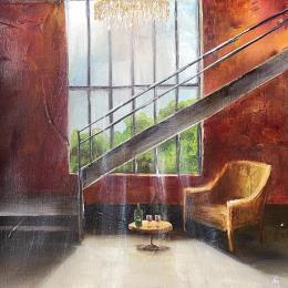 The French artist Virginie Mézan de Malartic qualifies her creation as "painting of beings" as the contrasts modelled on man occupy an important position. Exploring natural or artificial light, playing with areas of shadow and light, allows the artist to update a panel of emotions and feelings. Fly-on-the-wall, the characters that make up her paintings find themselves frozen in a moment, as if suspended outside of time, interrupting their course and leaving a place for reflection and introspection. Virginie Mézan de Malartic invokes in her practice a form of verticality that symbolises the necessity for everyone to distance themselves from their environment, their existence and their world.
