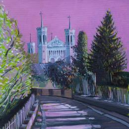 Pintura Notre-Dame de Fourvière en rose por Sirope Rémy | Pintura Figurative Architecture Oil