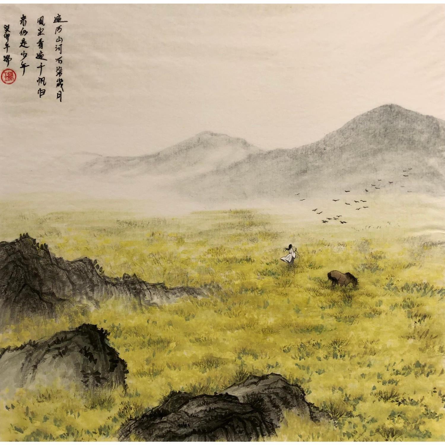 This unique and original contemporary artwork "Mer de fleur sur la prairie" on the subject of Landscapes has been created by the contemporary artist Amblard Rui.