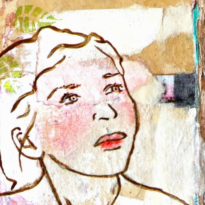 Pintura F2 PETITE PROSE 10029-1558-20240214-7 por Sablyne | Pintura Figurative Life style Wood Cardboard Acrylic Gluing Ink Pastel Gold leaf Upcycling Paper Pigments
