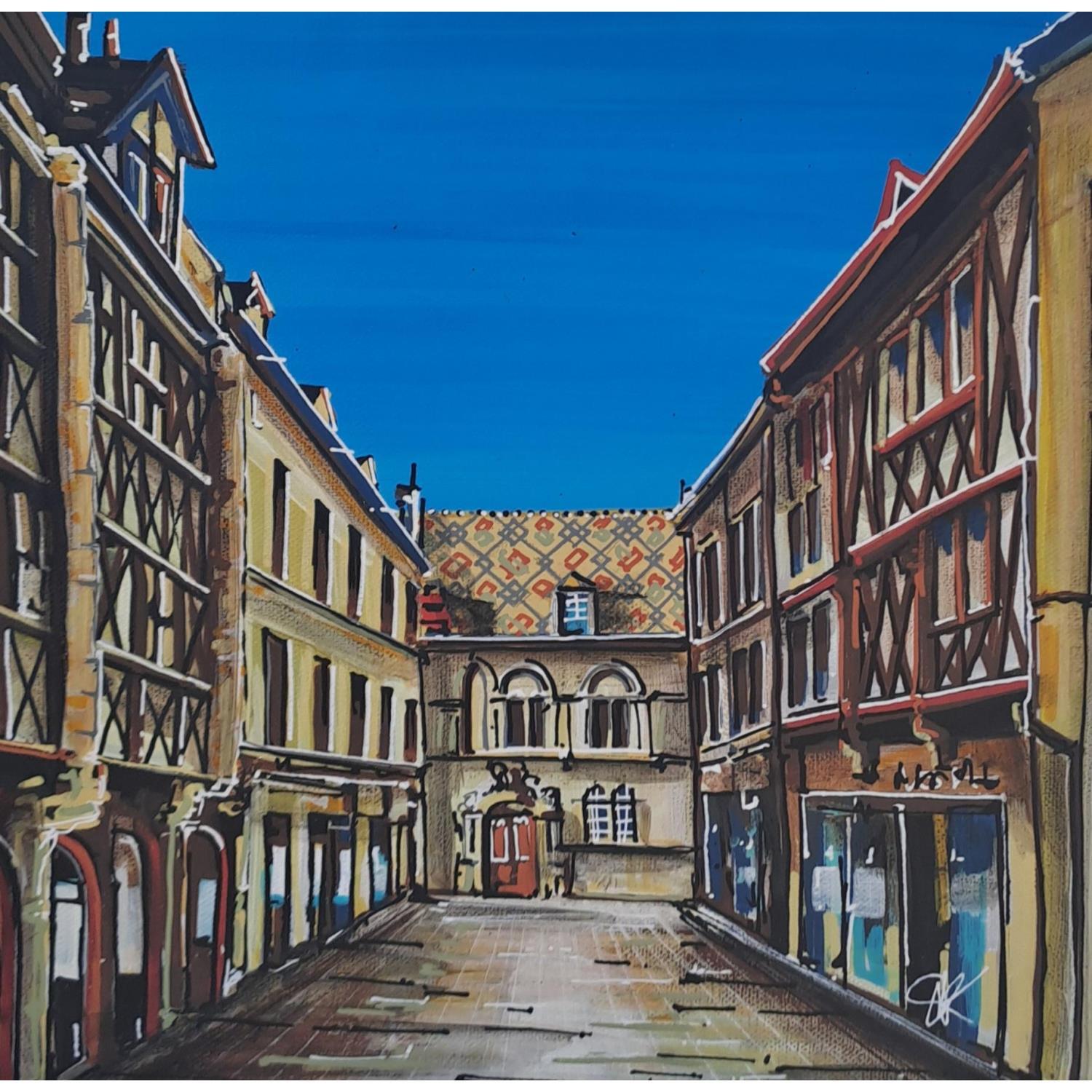 This unique and original contemporary artwork "La rue des Forges de Dijon" on the subject of Still-life has been created by the contemporary artist Touras Sophie-Kim .