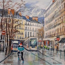 Centre ville GrenoblePintura Centre ville Grenoble por Lallemand Yves | Pintura Figurative Urban Acrylic