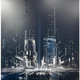This unique and original contemporary artwork "Omega" on the subject of Urban has been created by the contemporary artist Rey Julien.