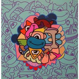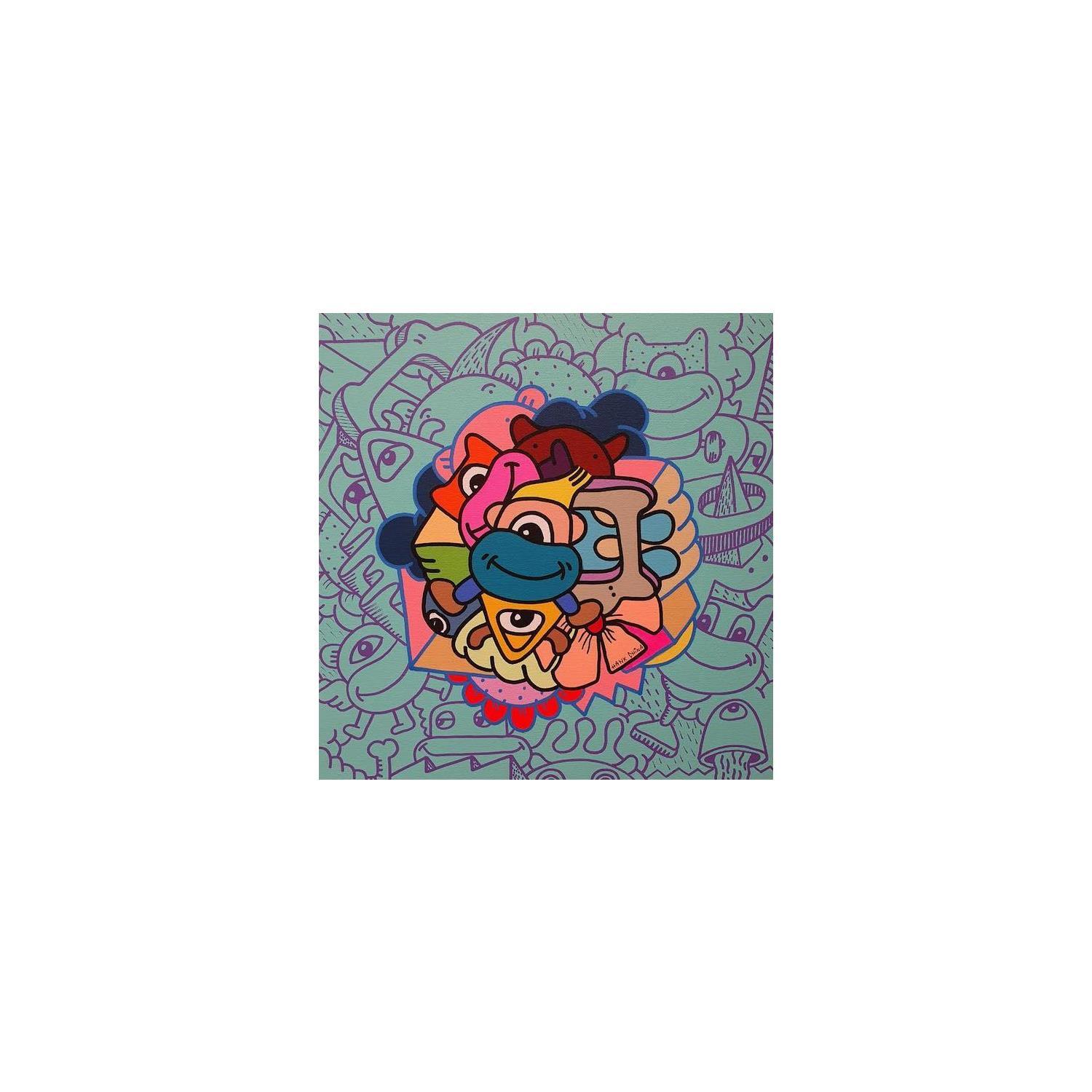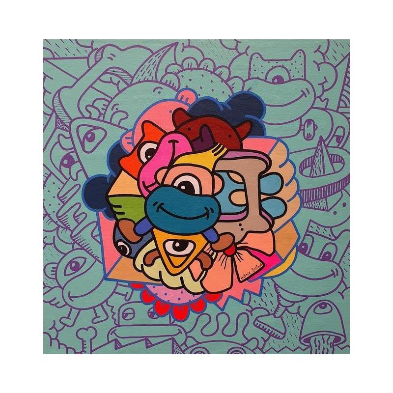 The artist used Acrylic, Posca media on Canvas to create this Pop-art, Small size painting.