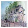 Pintura La maison rose de Montmartre por Bailly Kévin  | Pintura Figurative Urban Architecture Watercolor Ink