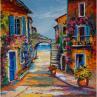 This unique and original contemporary artwork "Passerelle dans la vieille ruelle fleurie" on the subjects of Landscapes, Marine, Life style has been created by the contemporary artist Cédanne.