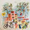 This unique and original contemporary artwork "A bicyclette sous le cerisier" on the subjects of Landscapes, Nature, Life style has been created by the contemporary artist Colombo Cécile.