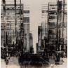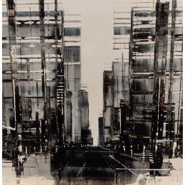 Although he has achromatopsia (absence of color vision), Julien Rey takes us on a journey through his paintings to urban landscapes. Julien Rey's story begins like all great stories: with an impossible dream. With achromatopsia, the artist sees only in black and white. Yet, this condition did not prevent him from traveling to the borders of Burma, from changing his life (he became a Buddhist monk there) or from embarking on art. From his trip to Burma, he brought back a perfect mastery of gold leaf, a characteristic element of his work. His technique based on lacquer worked with a knife and gold leaf inlays places light at the center of his works. Marked by Zen philosophy, he creates minimal compositions that appear as suspended moments, poetic pauses.