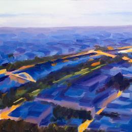 This unique and original contemporary artwork "Paris nuit bleu" on the subject of Landscapes has been created by the contemporary artist Eugène Romain.