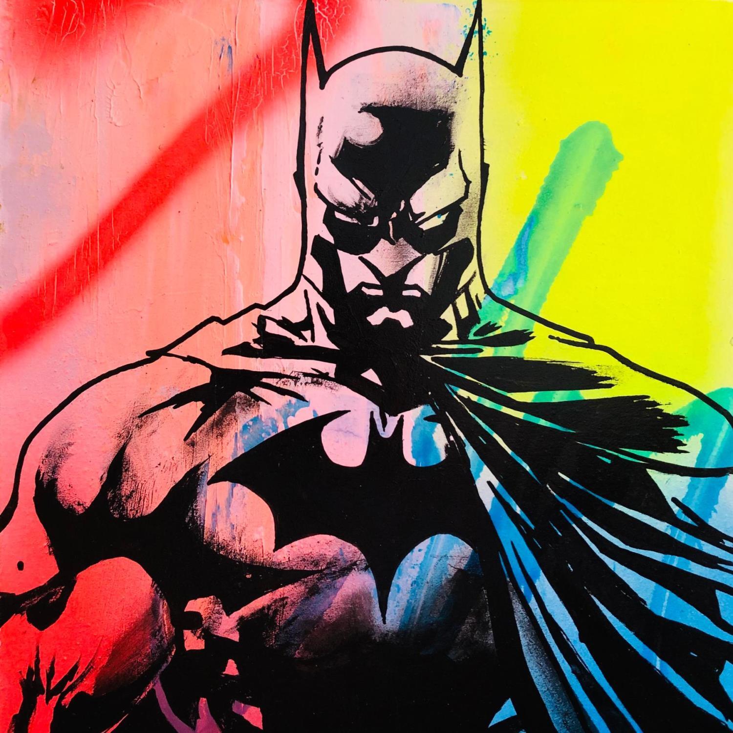This unique and original contemporary artwork "Batman" on the subject of Pop icons has been created by the contemporary artist Mestres Sergi.