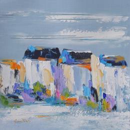 As a child, Dominique drew instinctively. As a teenager her notebooks were filled with her artwork. Convinced that art was her calling, she attended the School of Fine Arts as preparation for the entrance exams into the Decorative Arts School of Geneva. She trained there as an interior designer before turning to commercial art and cartoons. At the time, Dominique created meticulous figurative works with a brush and acrylics, directly inspired by architectural drawings. But this rigor did not suit her, and her work evolved towards the abstract. For many years she taught painting classes in Avoriaz where she participated in the creation of art workshops at the resort. She later organised many workshops in Haute Savoie before creating her own gallery in Thonon-lesBains.