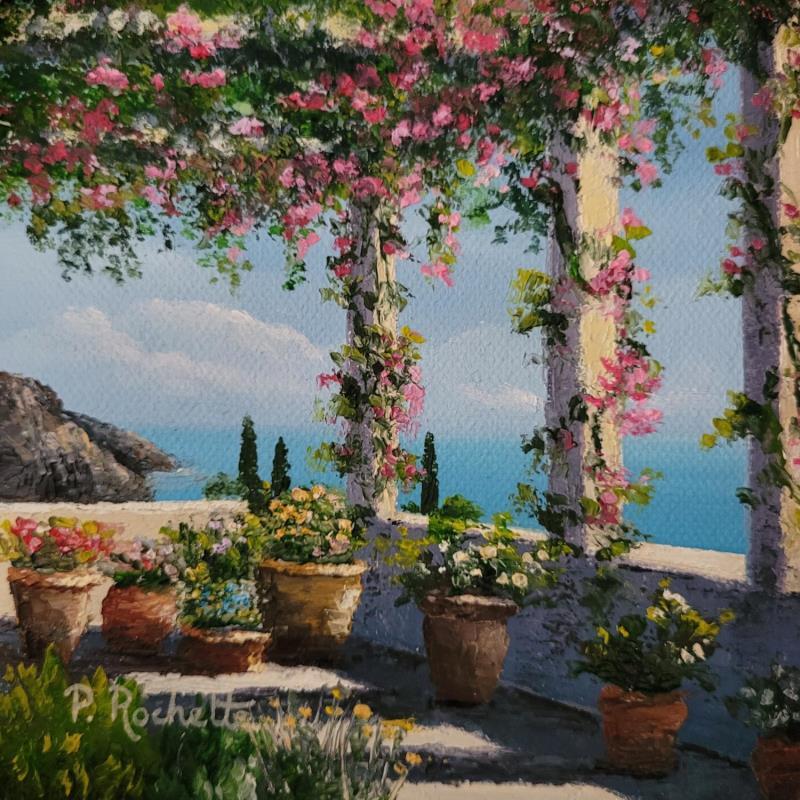This unique and original contemporary artwork "La pergola " on the subject of Landscapes has been created by the contemporary artist Rochette Patrice.