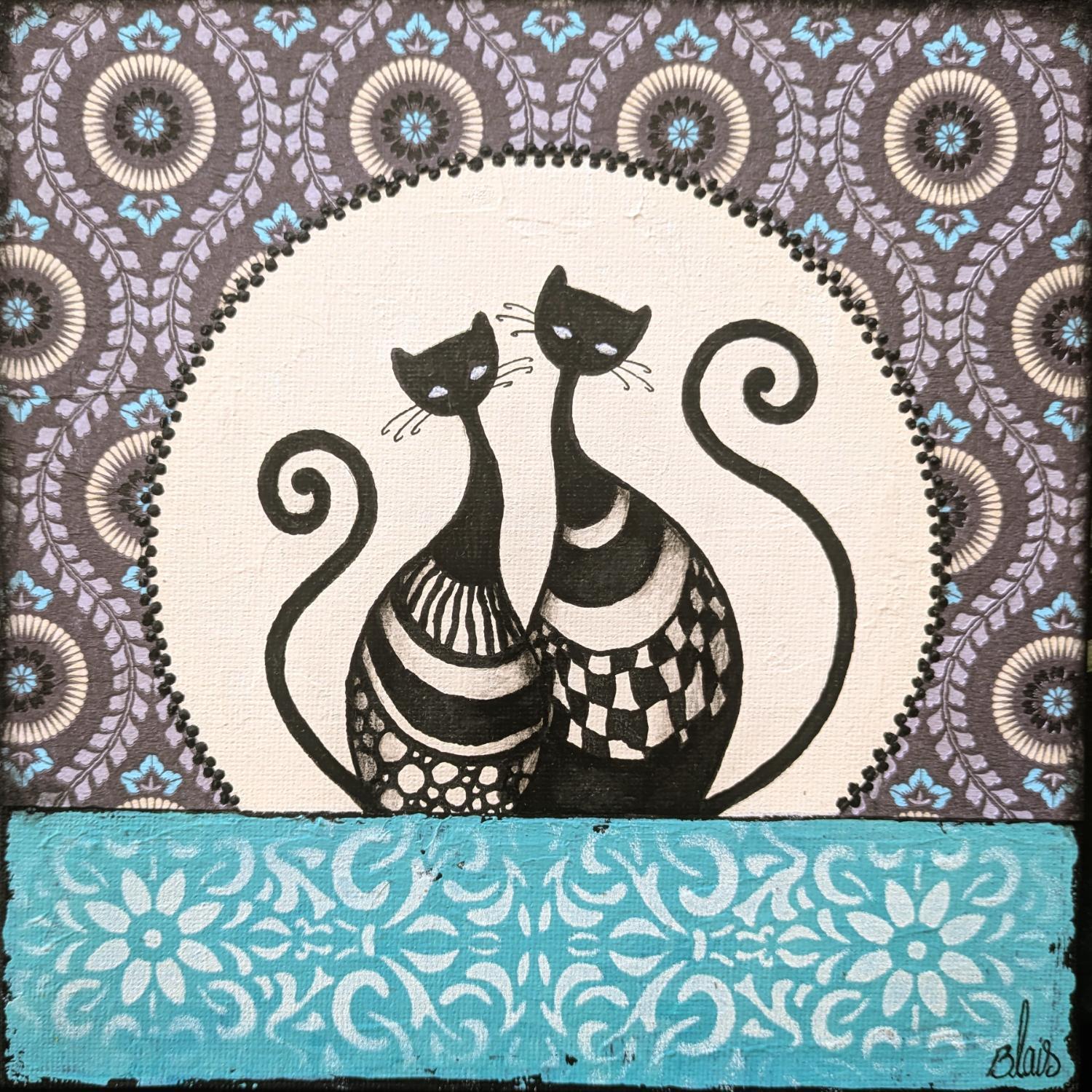 This unique and original contemporary artwork "Chats 15" on the subject of Animals has been created by the contemporary artist Blais Delphine.