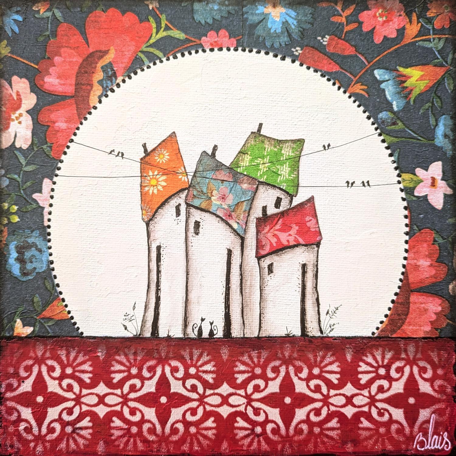 The artist used Acrylic, Gluing media on Canvas board to create this Figurative, Small size painting.