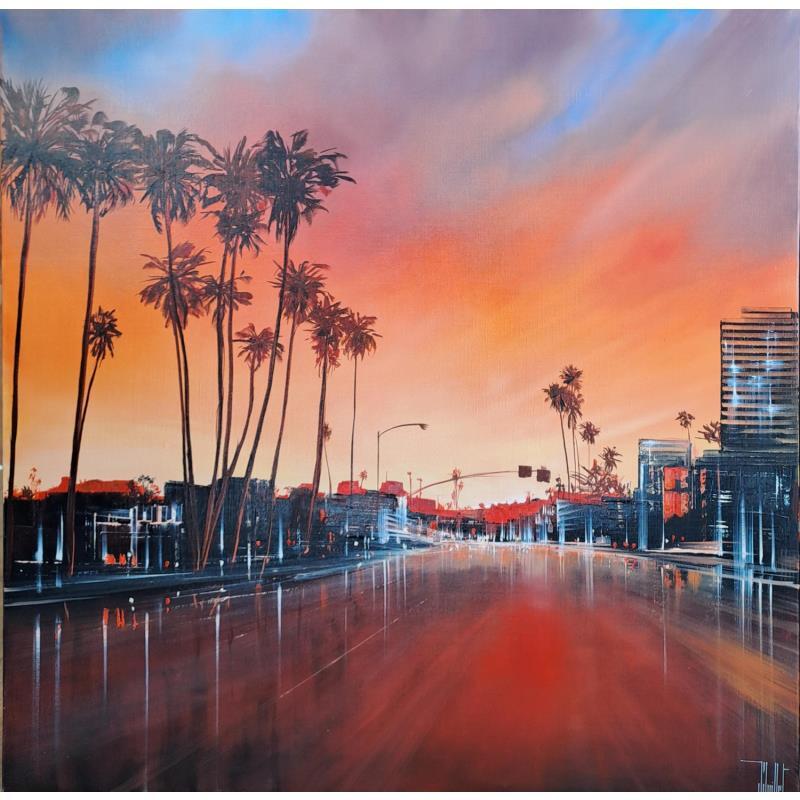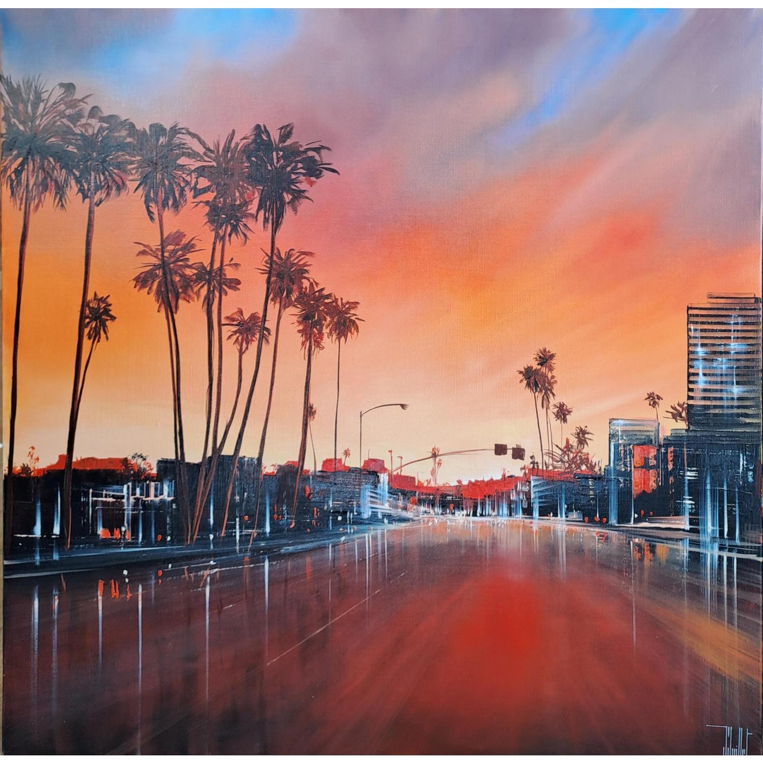 This unique and original contemporary artwork "California Sunset" on the subject of Urban has been created by the contemporary artist Guillet Jerome.