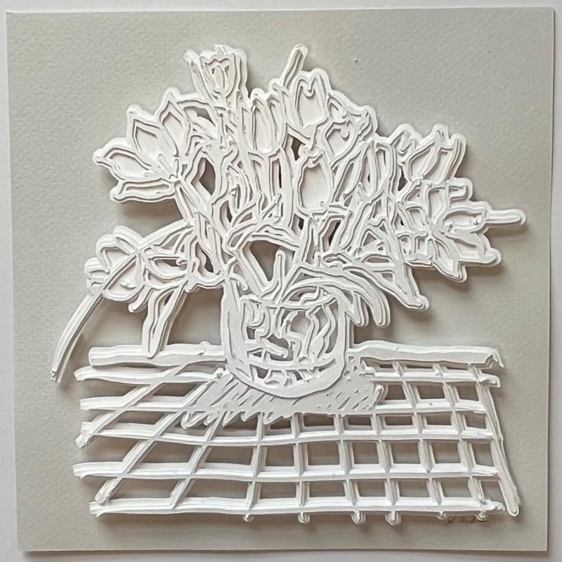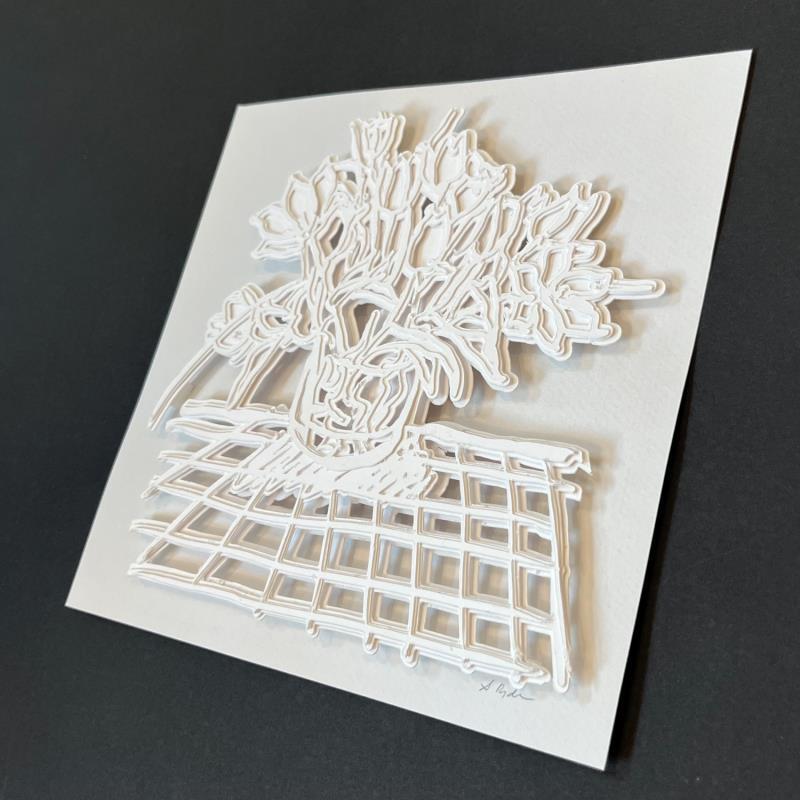 Flowers Just for Me is created with many layers of high quality white paper. It is a Bas Relief. Shadows create a sense of depth.