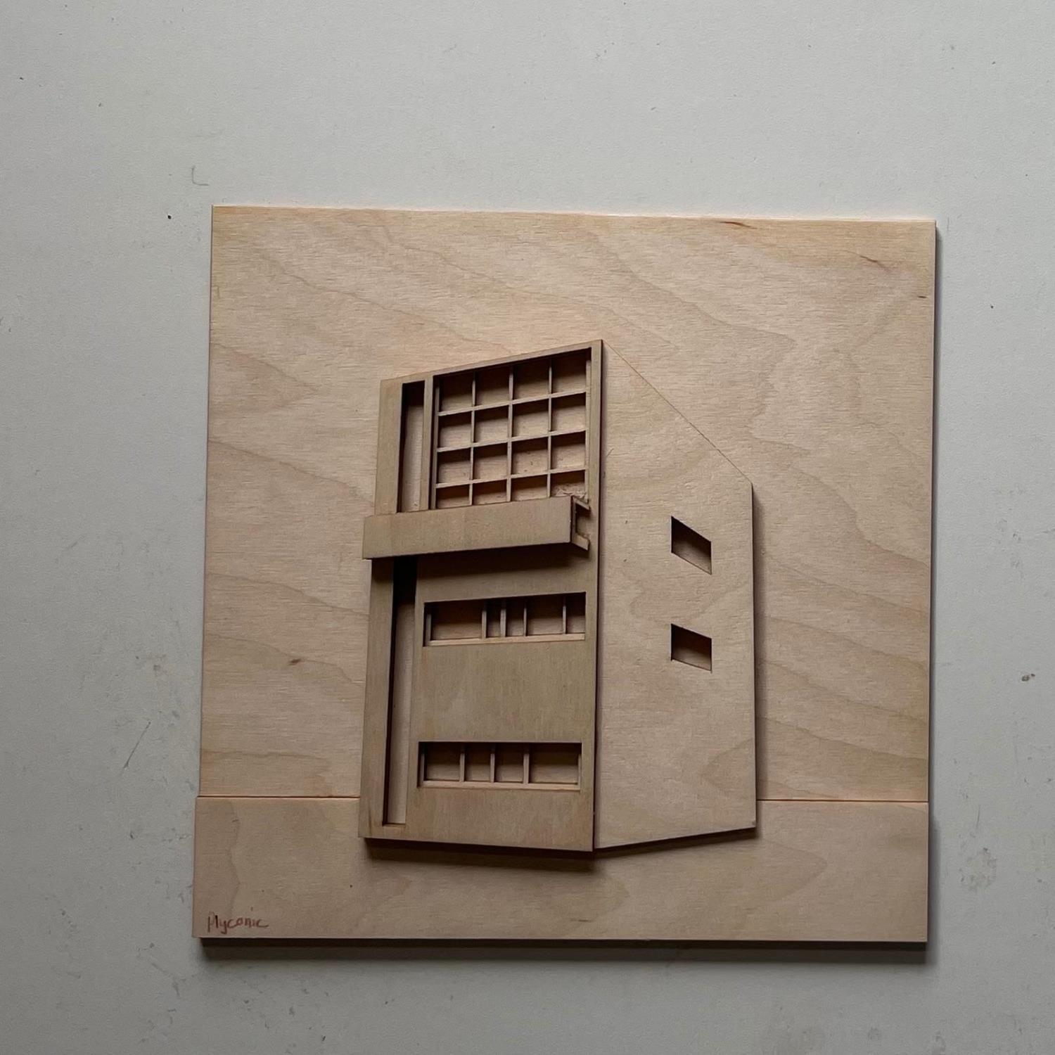 Helen, known by her pseudonym Plyconic, is an East London-based artist with a background in furniture design. Her passion for art blossomed after a captivating visit to London's Barbican Centre, where the interaction of light with architecture deeply inspired her. This decisive moment led her to use plywood, the material of her creations, to capture and recreate the observed play of light.