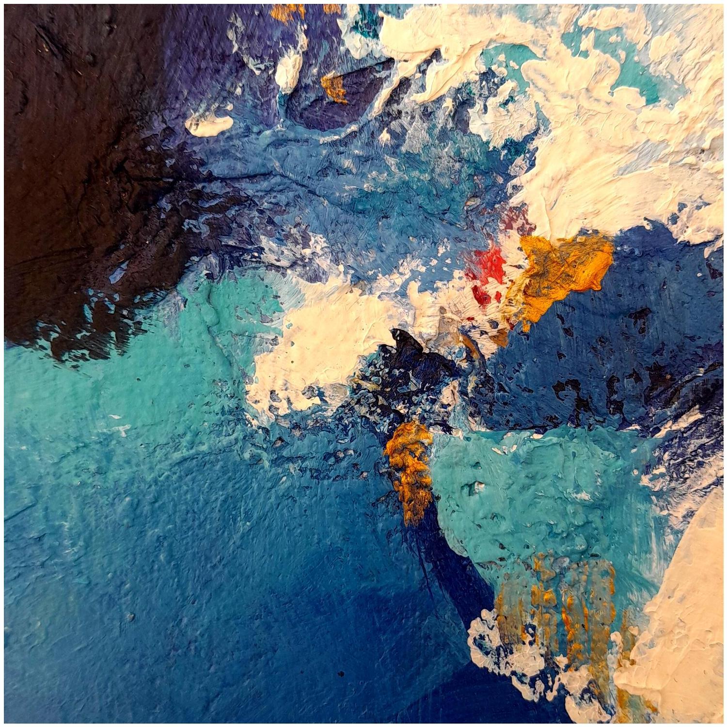 The artist used the Acrylic technique to create this small-format painting on canvas in the Abstract style.