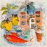 Pintura Le jus des citrons por Colombo Cécile | Pintura Naive art Landscapes Nature Life style Watercolor Acrylic Gluing Ink Pastel