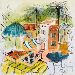 This unique and original contemporary artwork "A l' ombre du parasol" on the subjects of Landscapes, Life style, Nature has been created by the contemporary artist Colombo Cécile.