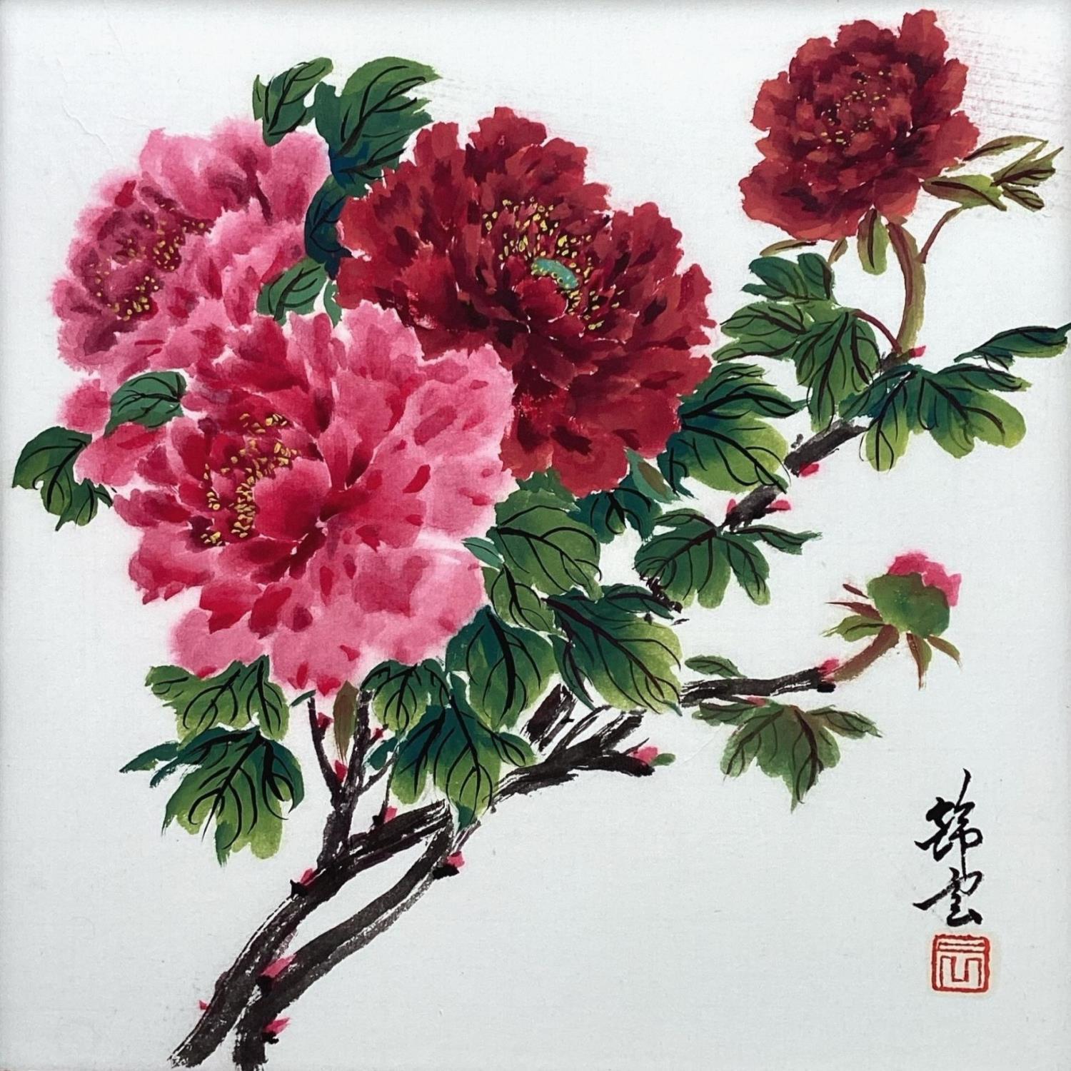 This unique and original contemporary artwork "Red Peonies" was created by contemporary artist Tayun.