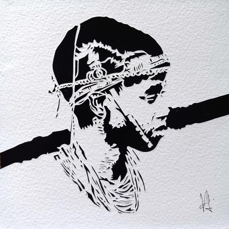 The artist used the paper-cut technique to create this small-format work on Figurative Paper on the theme of Portraits.