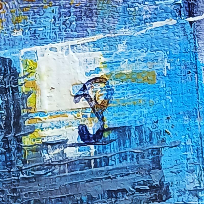 The artist used the Acrylic knife technique to create this small-format painting on Canvas in a Figurative style with an Urban theme.