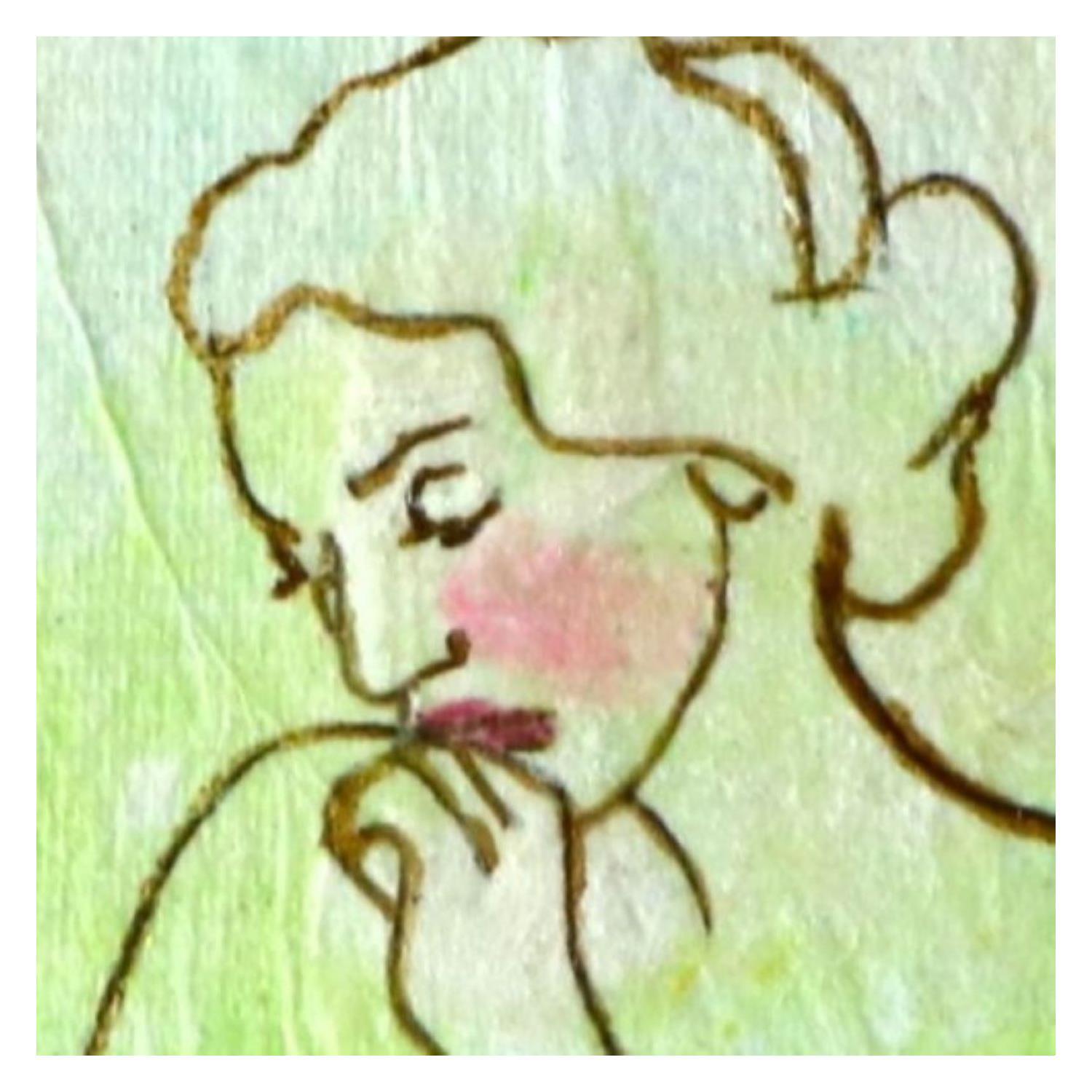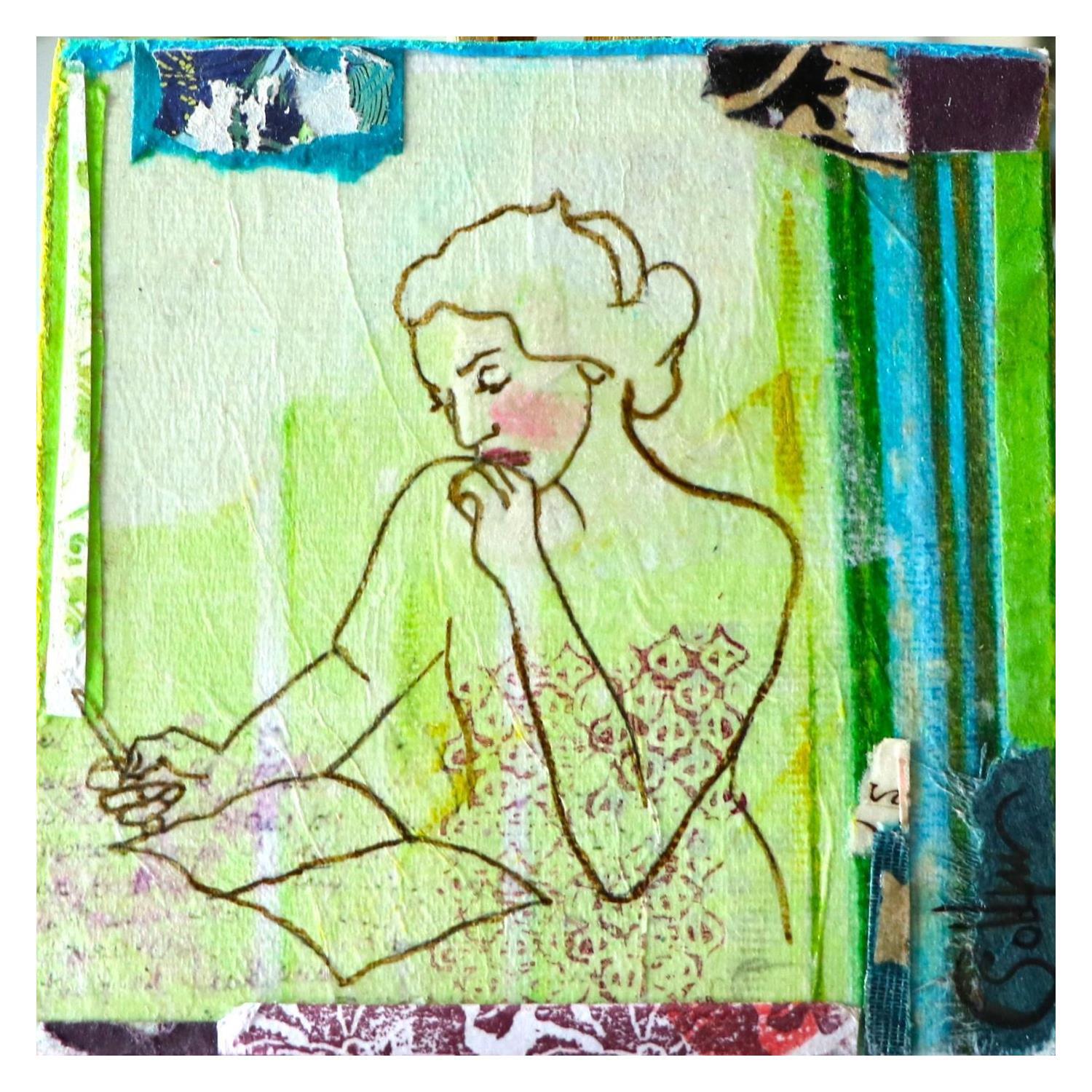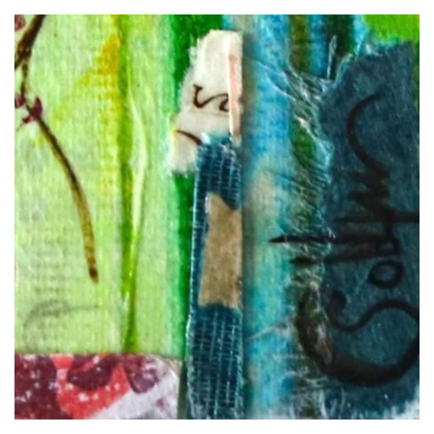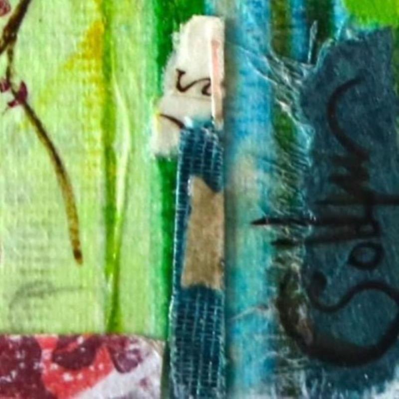 The artist used mixed media, Stamping, Ink, Acrylic, Collage d'art, Upcycling to create this small-format canvas on Wood painting in the Art Singulier style on the theme Scenes de vie.