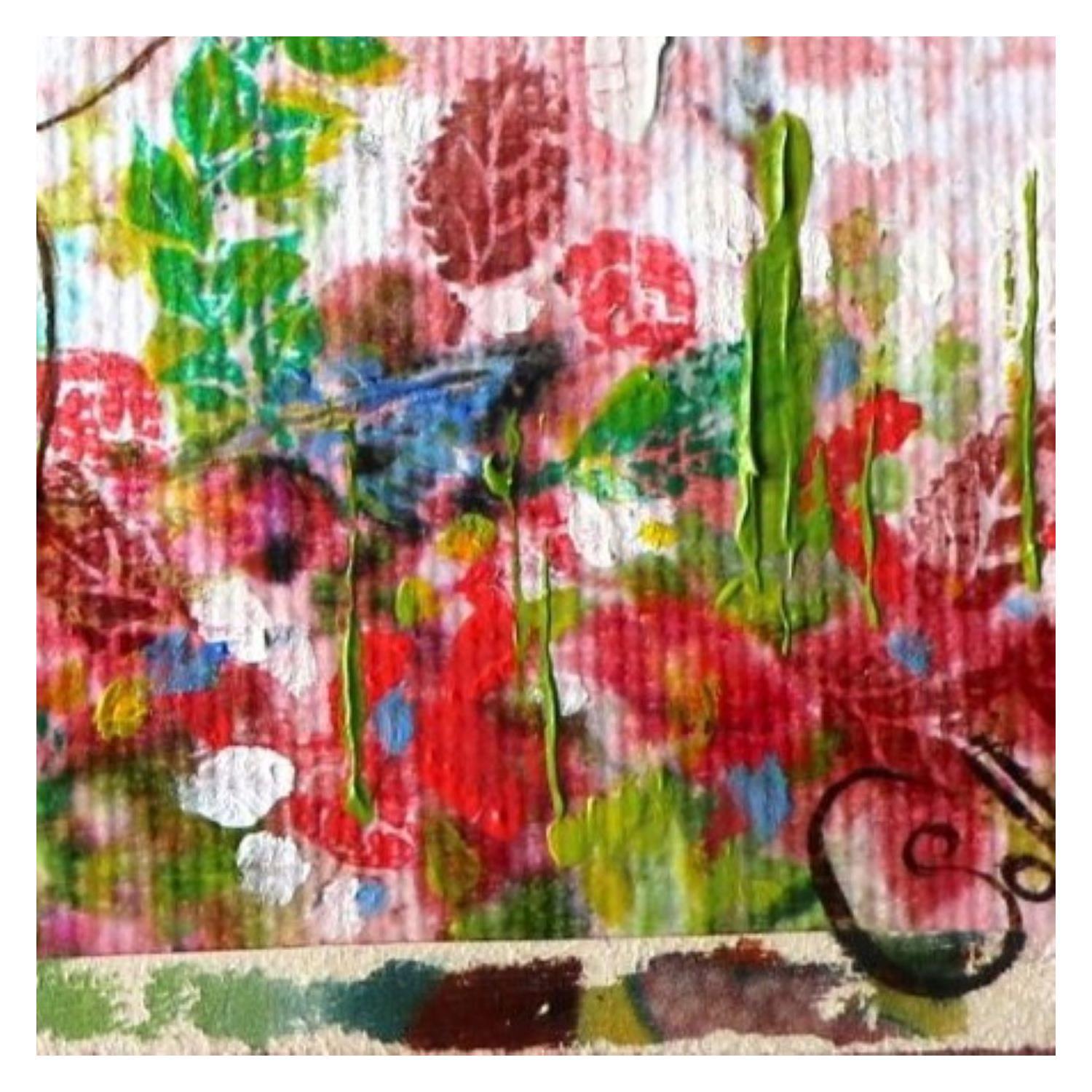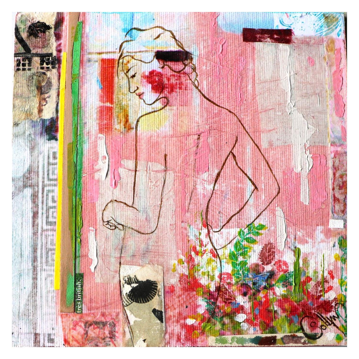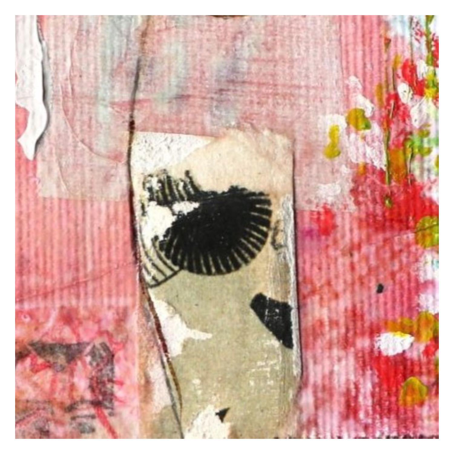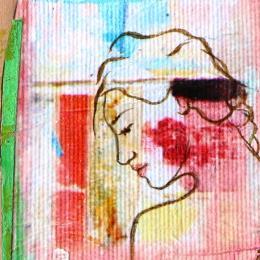 The artist used mixed media, Stamping, Ink, Acrylic, Collage d'art, Upcycling to create this small-format canvas on Wood Singular Art style painting on the theme Scenes of life.