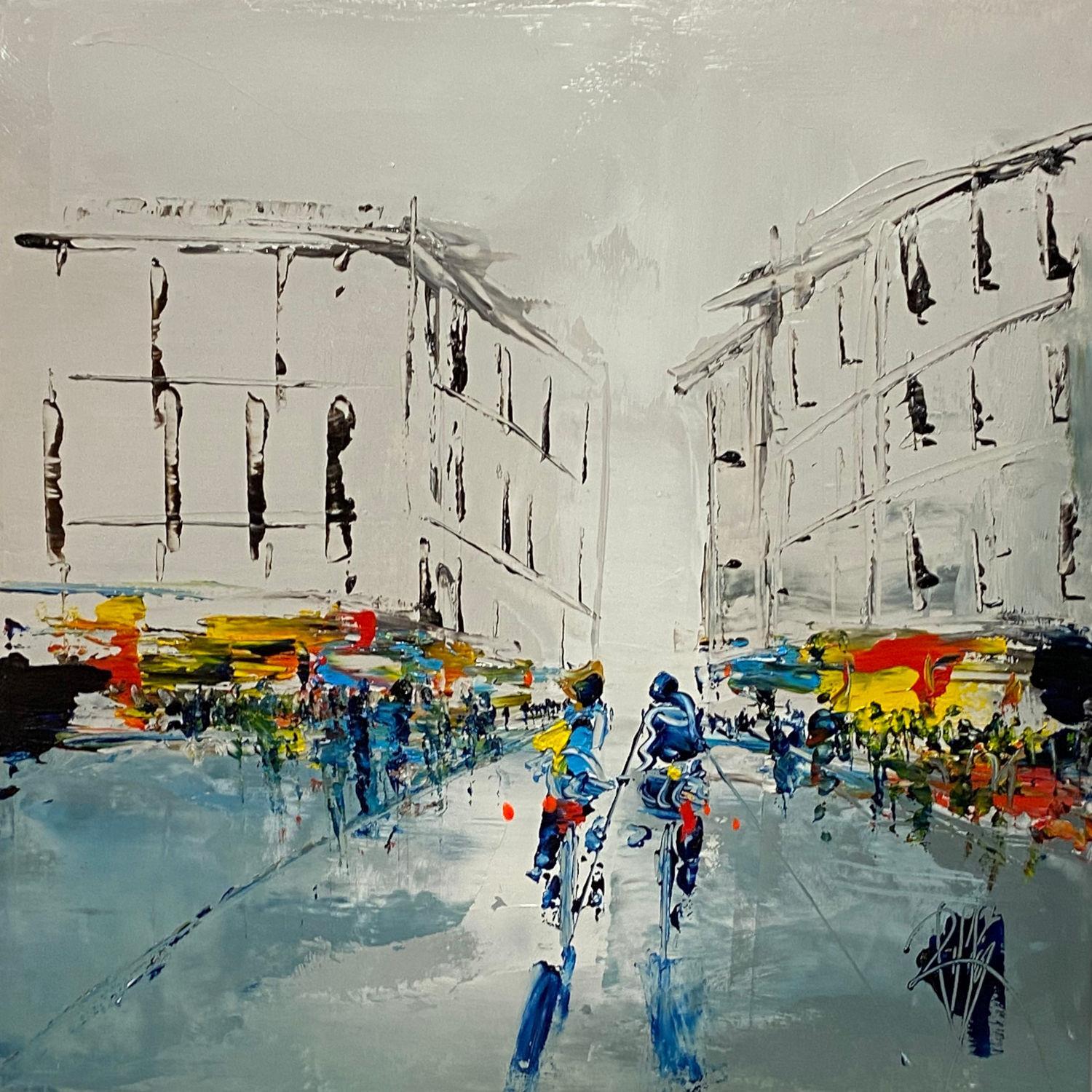 This unique and original contemporary artwork "Sur la place " on the subject of Urban has been created by the contemporary artist Raffin Christian.
