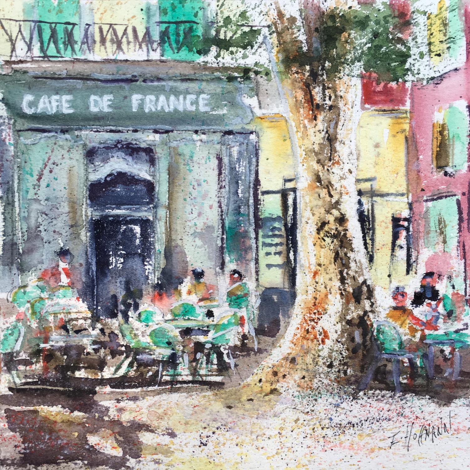 This unique and original contemporary artwork "Toulon Café provençal " on the subject of Urban has been created by the contemporary artist Hoffmann Elisabeth.
