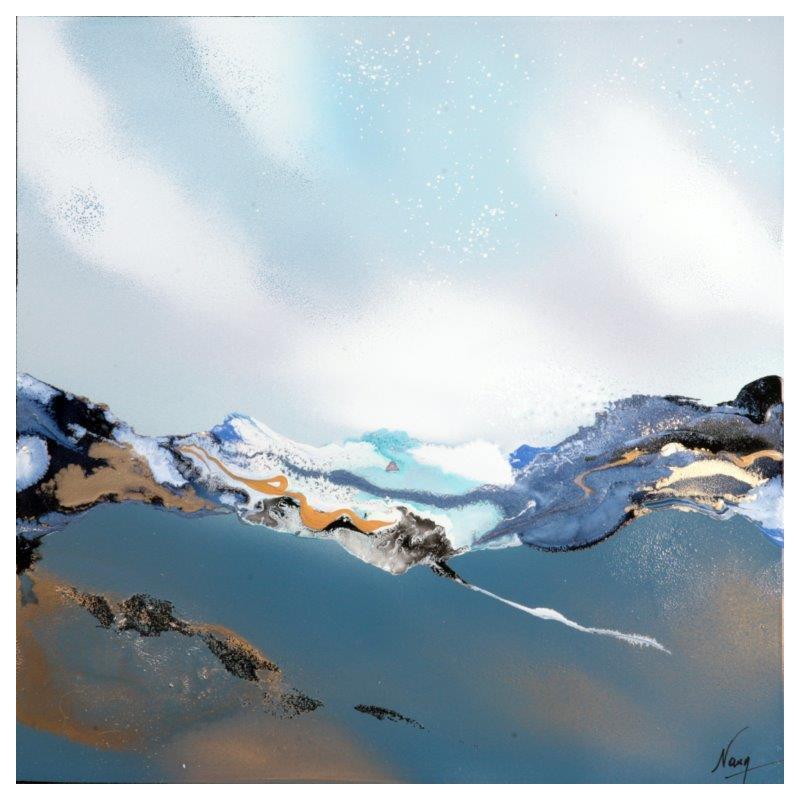 The artist used Acrylic, Ink media on Other to create this Abstract, Small size painting.