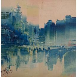This unique and original contemporary artwork "Symétrie Bleue" on the subject of Urban has been created by the contemporary artist Levesque Emmanuelle.