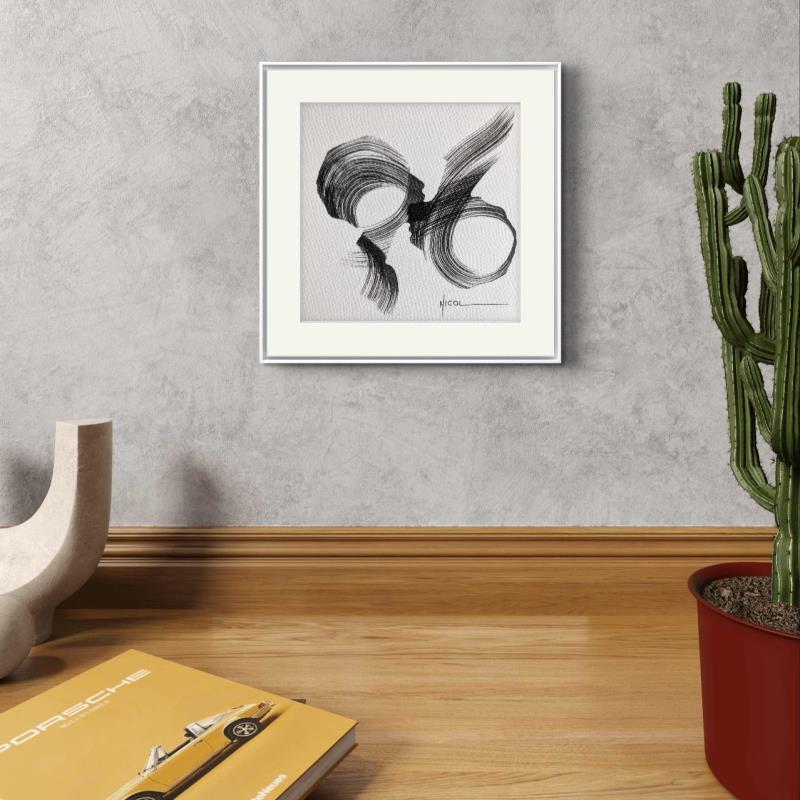 This unique and original contemporary artwork "Time CCCII" on the subjects of Minimalist, Black & White, Portrait has been created by the contemporary artist Nicol.