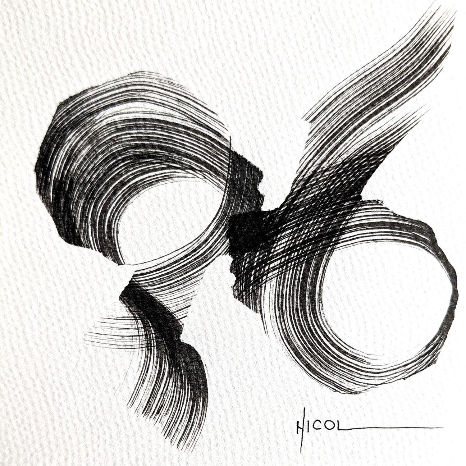 Pintura Time CCCII por Nicol | Pintura Figurative Portrait Minimalist Black & White Ink