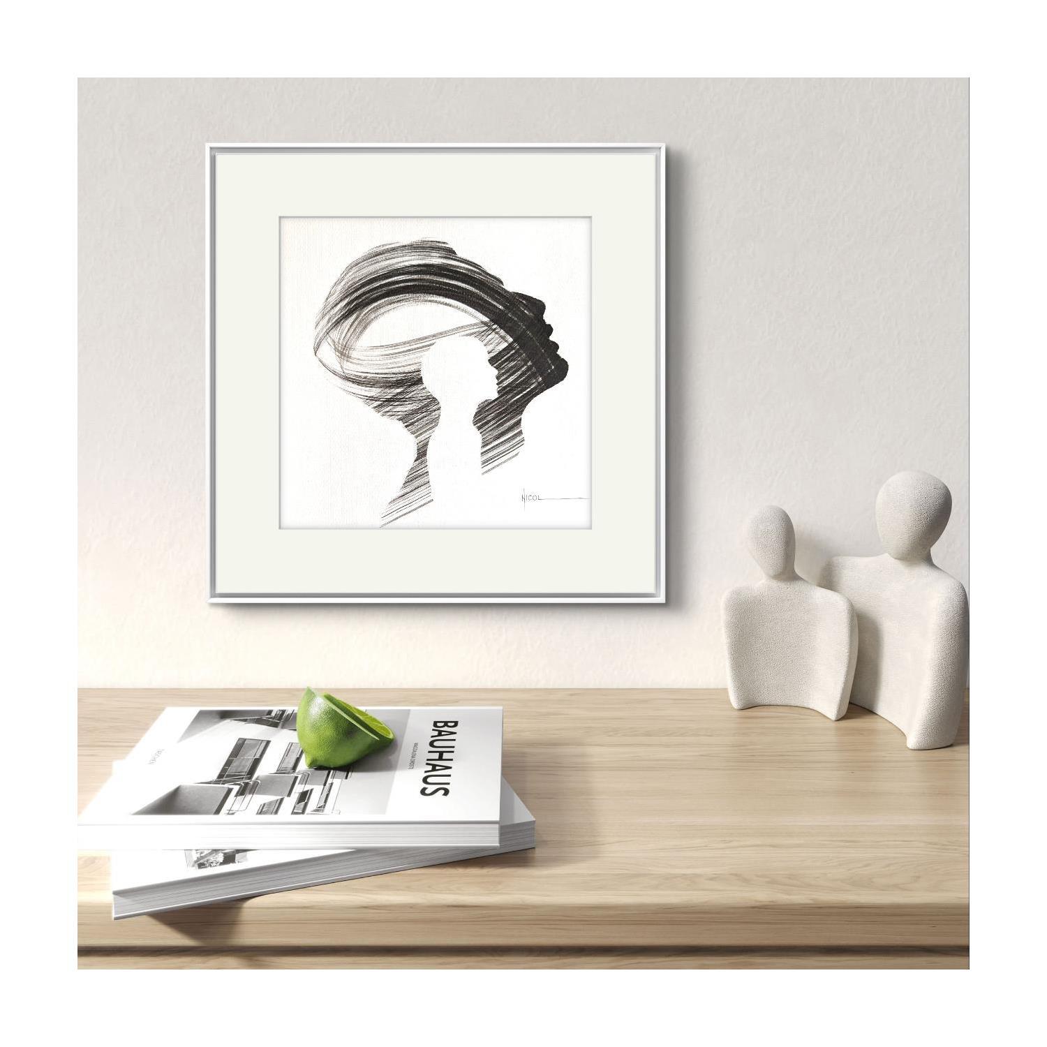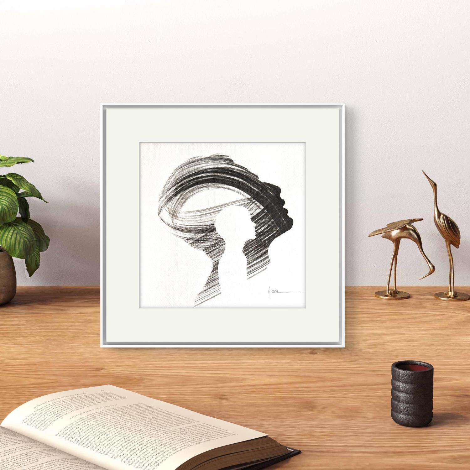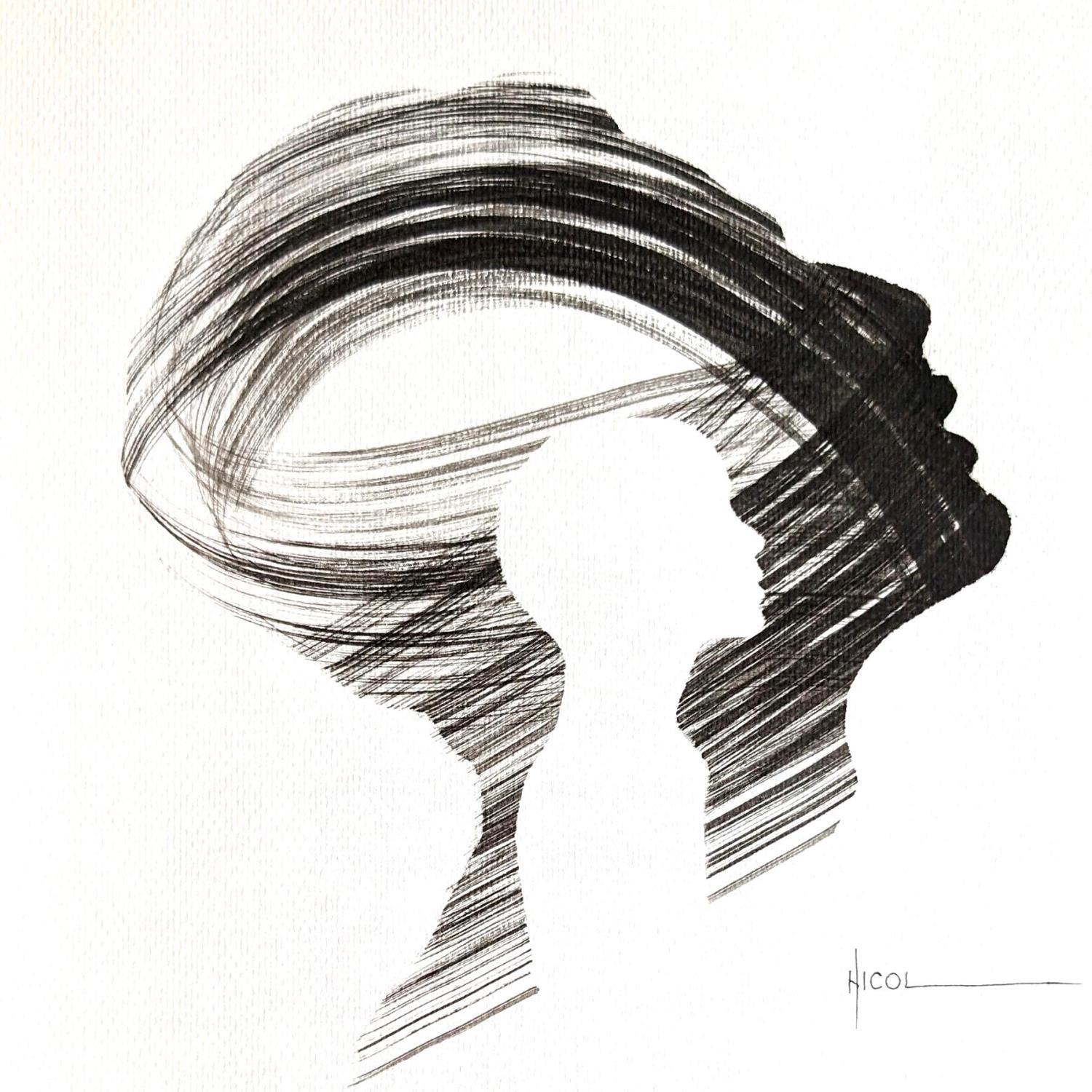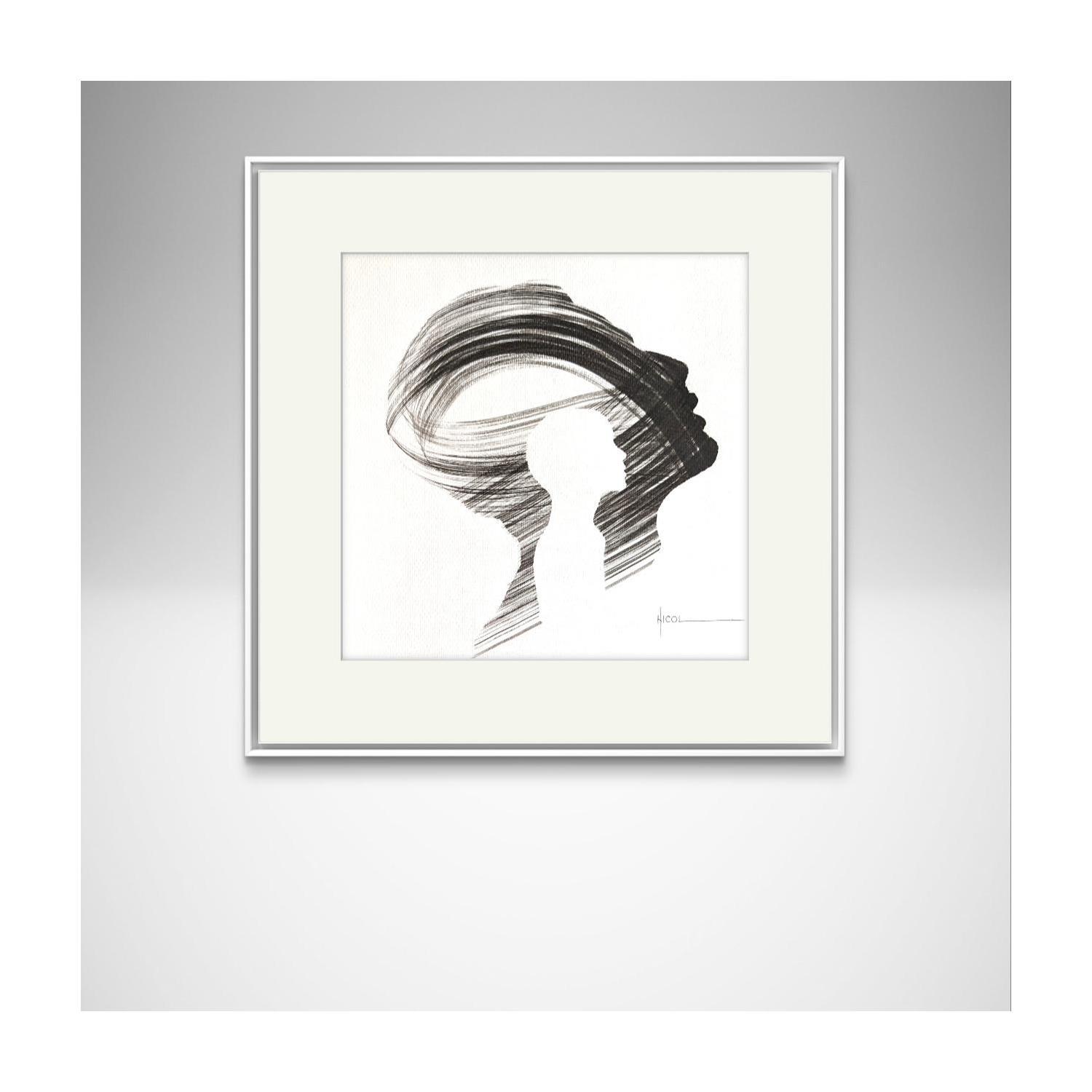 This unique and original contemporary artwork "Time CCCXXXVI" on the subjects of Portrait, Minimalist, Black & White has been created by the contemporary artist Nicol.
