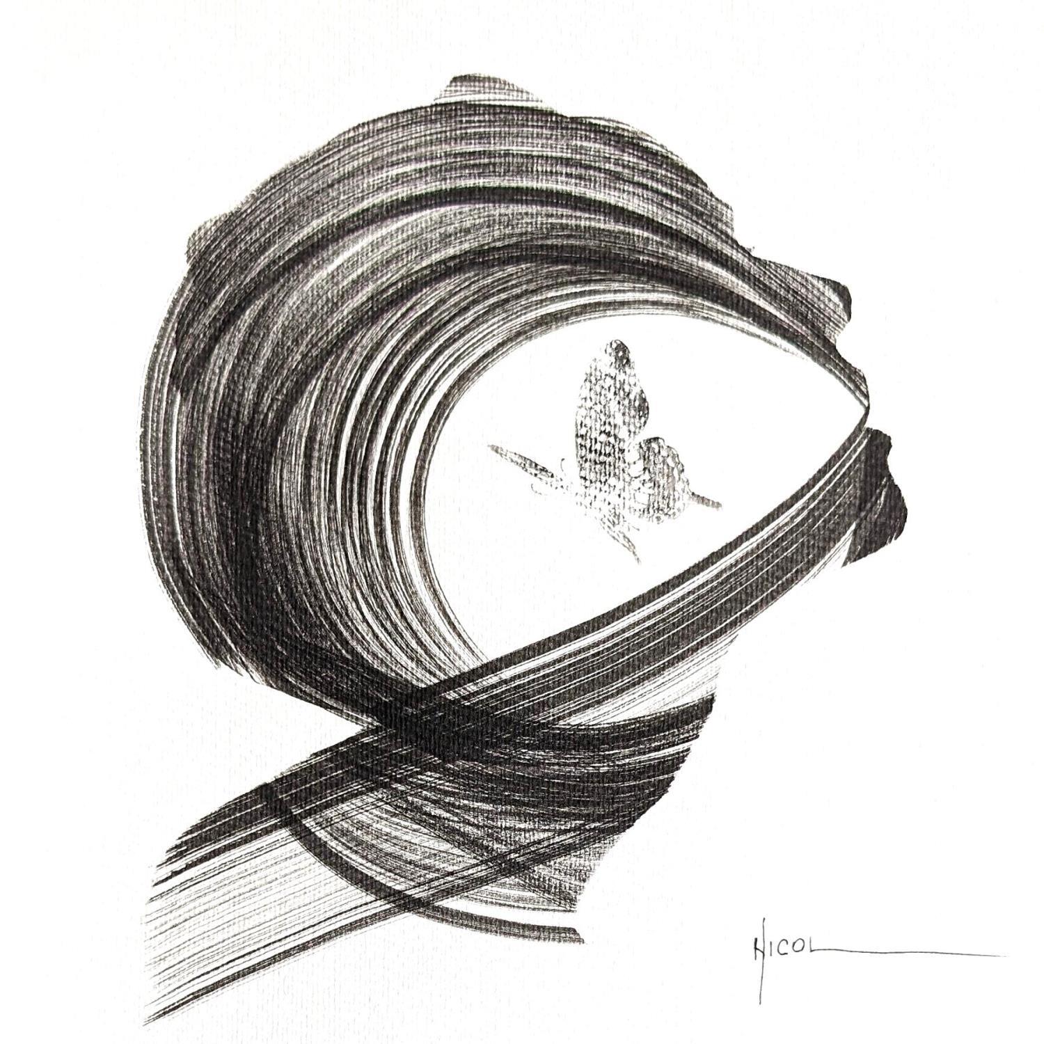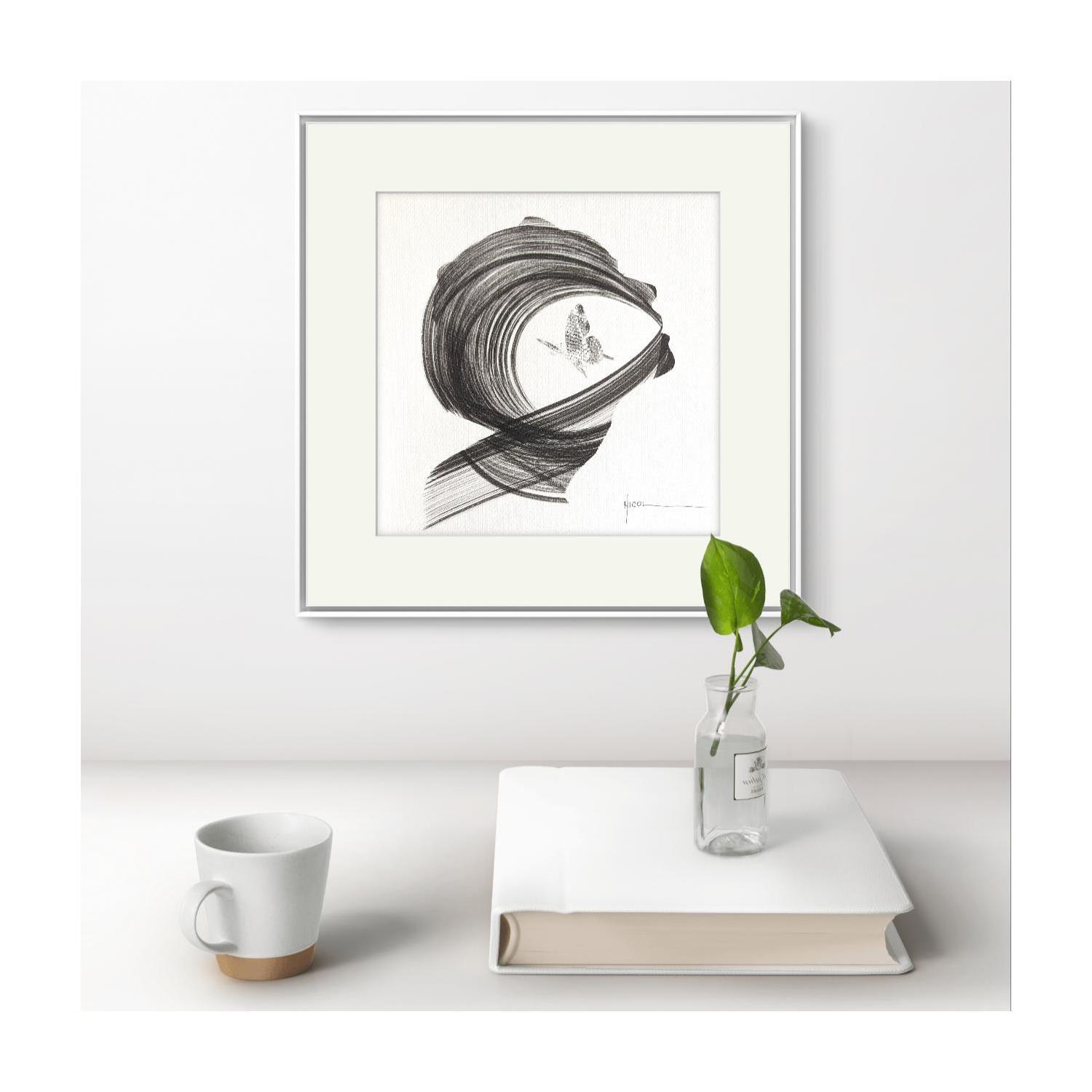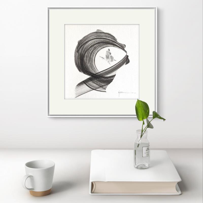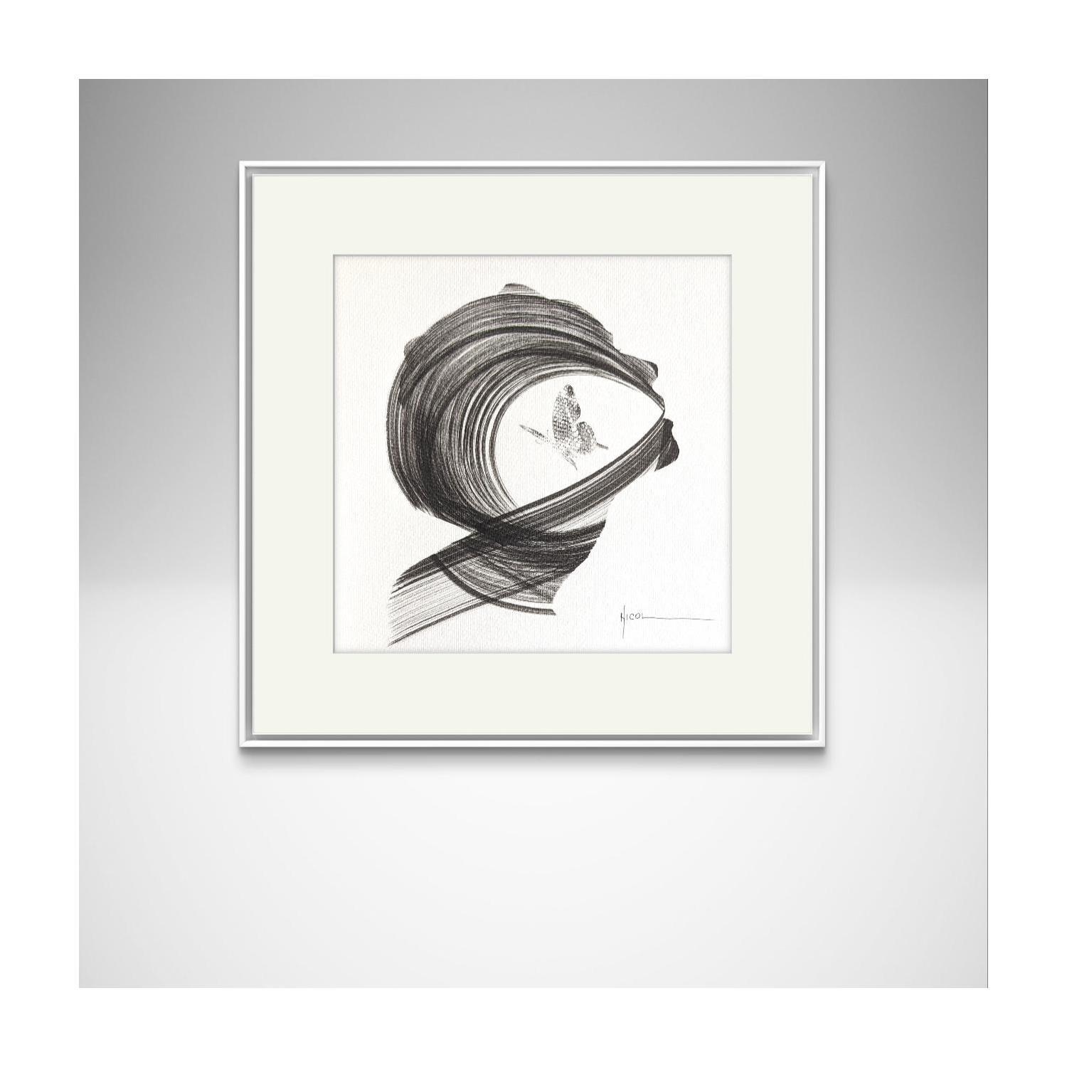 This unique and original contemporary artwork "Time CCCXXXVII" on the subjects of Minimalist, Black & White, Portrait has been created by the contemporary artist Nicol.