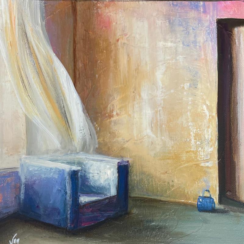 The French artist Virginie Mézan de Malartic qualifies her creation as "painting of beings" as the contrasts modelled on man occupy an important position. Exploring natural or artificial light, playing with areas of shadow and light, allows the artist to update a panel of emotions and feelings. Fly-on-the-wall, the characters that make up her paintings find themselves frozen in a moment, as if suspended outside of time, interrupting their course and leaving a place for reflection and introspection. Virginie Mézan de Malartic invokes in her practice a form of verticality that symbolises the necessity for everyone to distance themselves from their environment, their existence and their world.