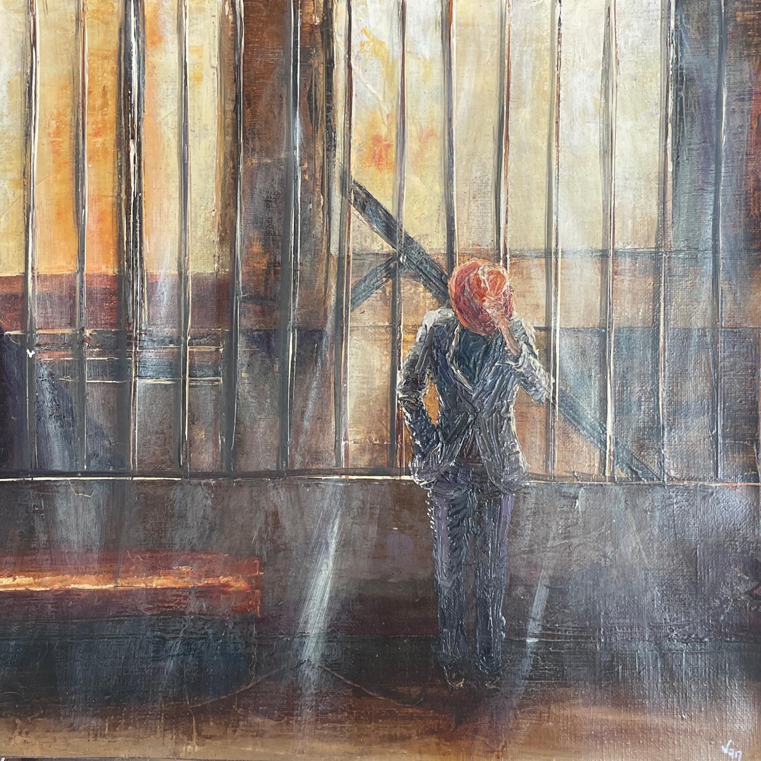 The French artist Virginie Mézan de Malartic qualifies her creation as "painting of beings" as the contrasts modelled on man occupy an important position. Exploring natural or artificial light, playing with areas of shadow and light, allows the artist to update a panel of emotions and feelings. Fly-on-the-wall, the characters that make up her paintings find themselves frozen in a moment, as if suspended outside of time, interrupting their course and leaving a place for reflection and introspection. Virginie Mézan de Malartic invokes in her practice a form of verticality that symbolises the necessity for everyone to distance themselves from their environment, their existence and their world.