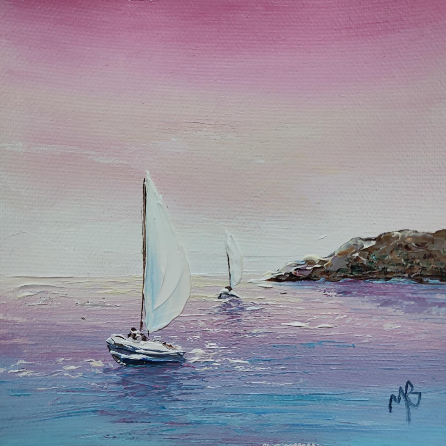 This unique and original contemporary artwork "Une soirée rose" on the subject of Landscapes has been created by the contemporary artist Blandin Magali.