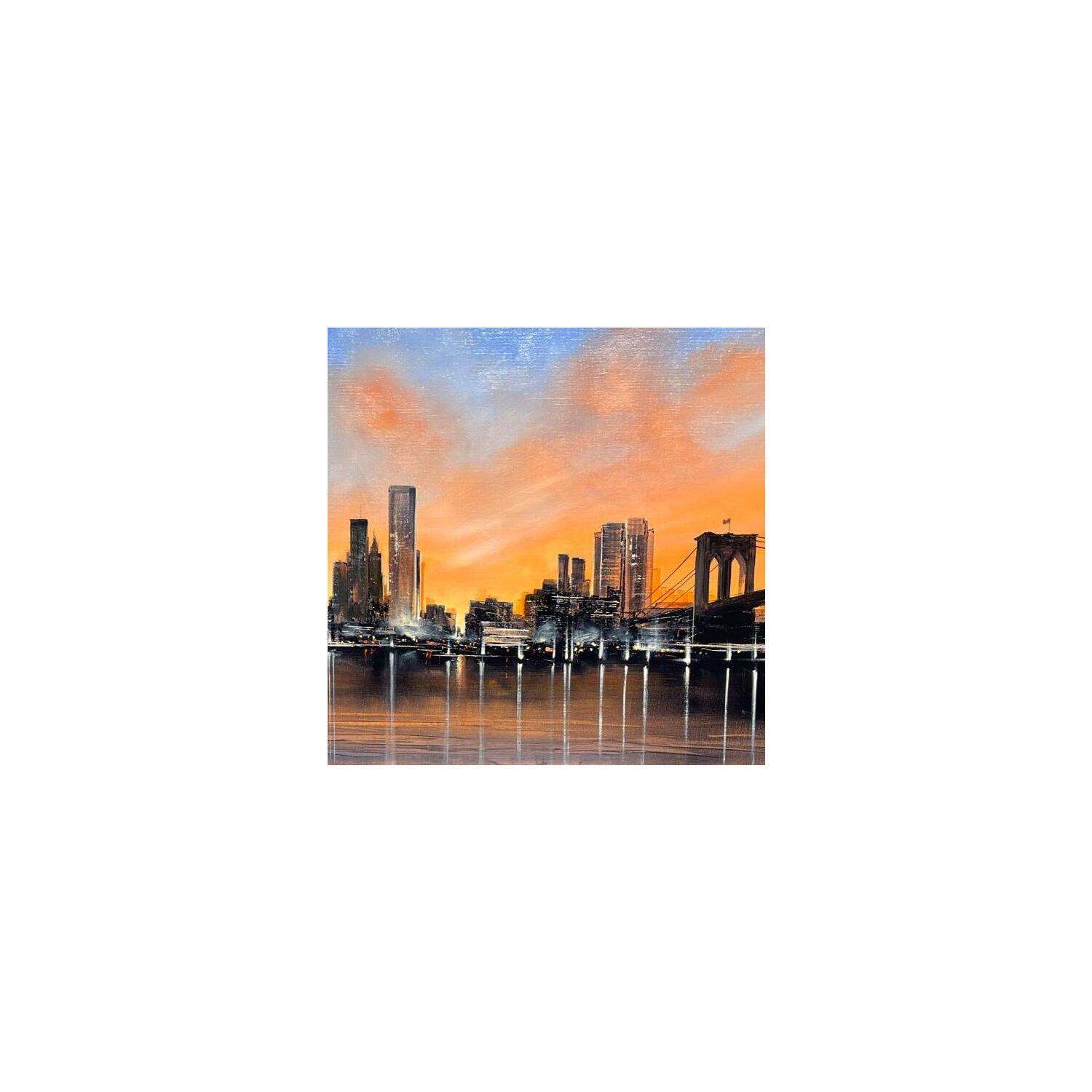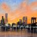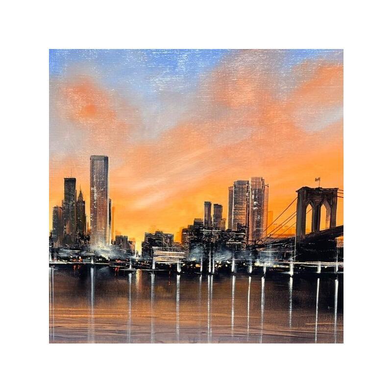 This unique and original contemporary artwork "Manhattan sous un voile rosé" has been created by the contemporary artist Guillet Jerome.