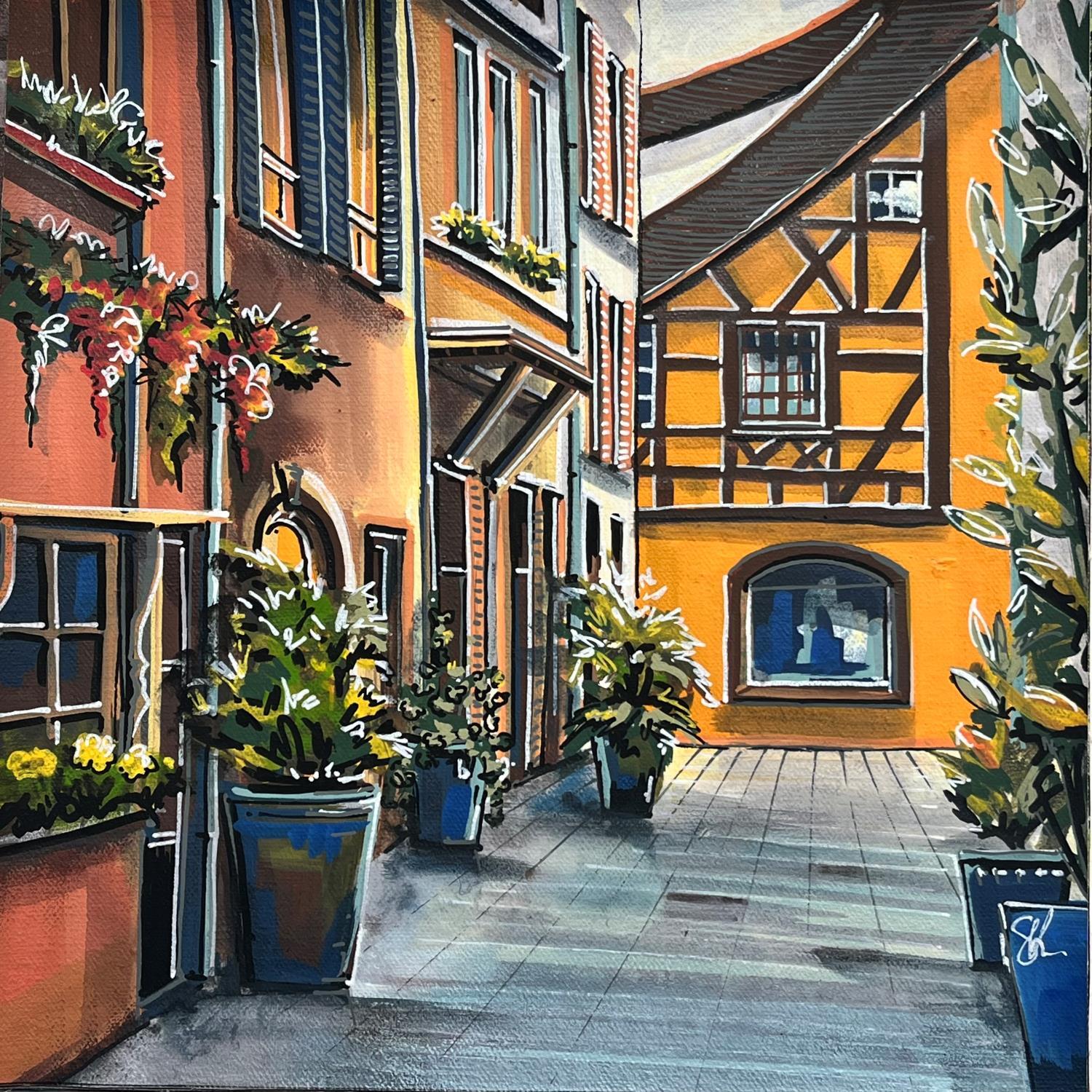 This unique and original contemporary artwork "La ruelle de la maison jaune à colombage, Strasbourg" on the subjects of Architecture, Landscapes, Urban has been created by the contemporary artist Touras Sophie-Kim .