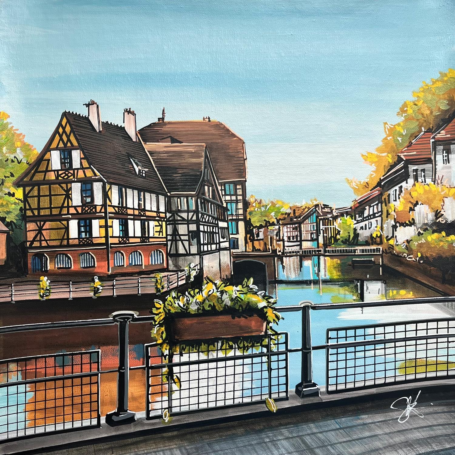 This unique and original contemporary artwork "Reflet sur la petite France" on the subjects of Architecture, Nature, Urban has been created by the contemporary artist Touras Sophie-Kim .
