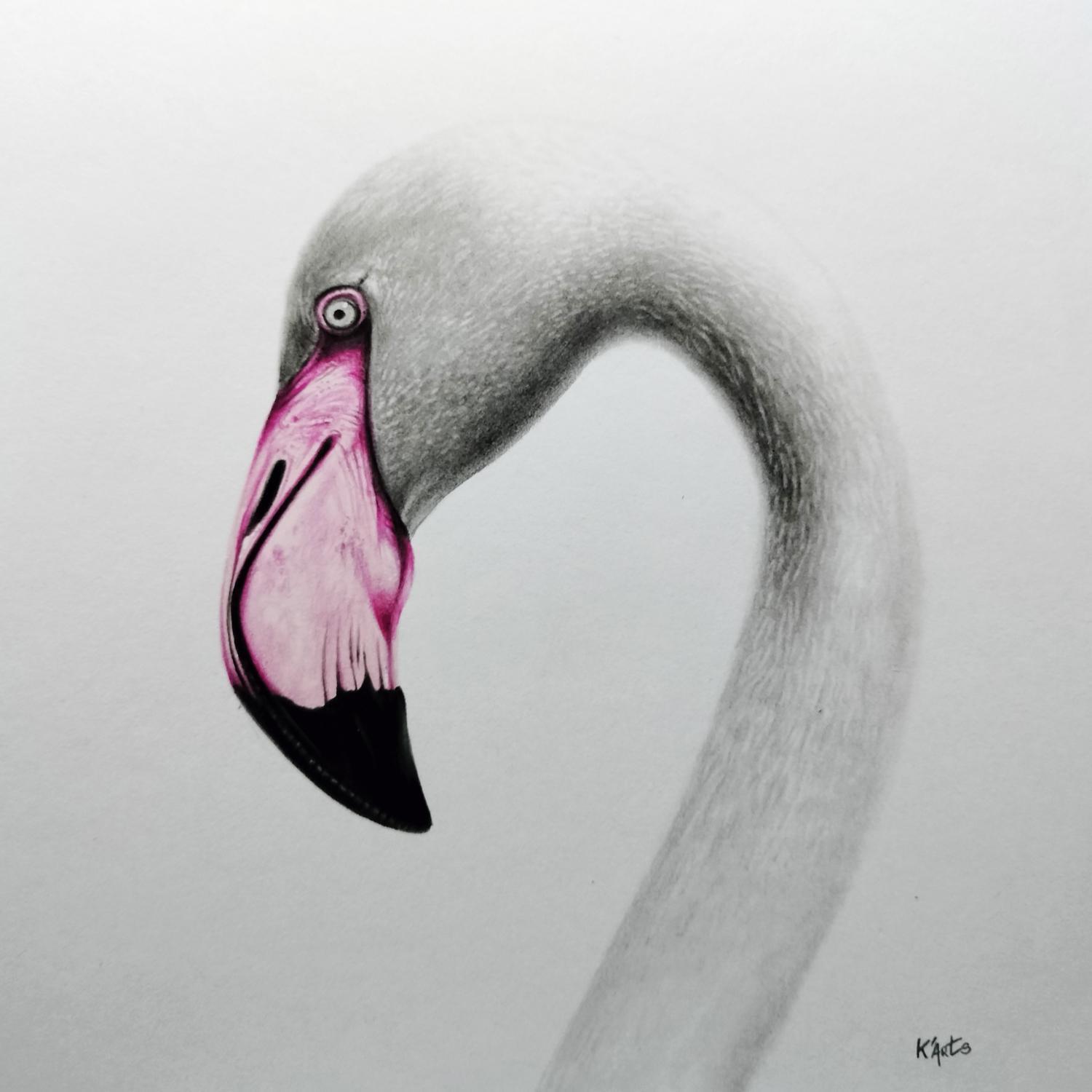 This unique and original contemporary artwork "Flamant rose" on the subjects of Life style, Animals, Society has been created by the contemporary artist K'Arts.