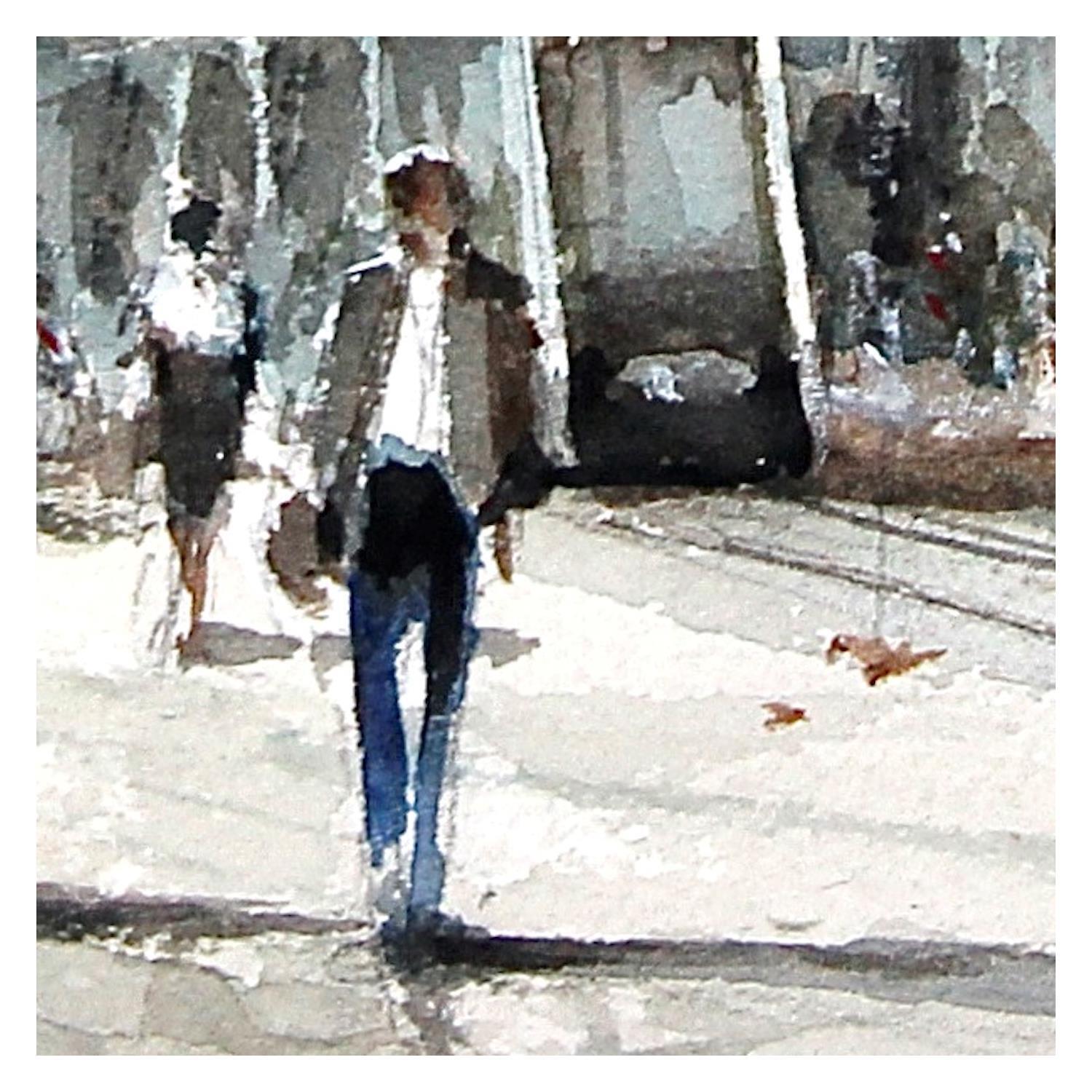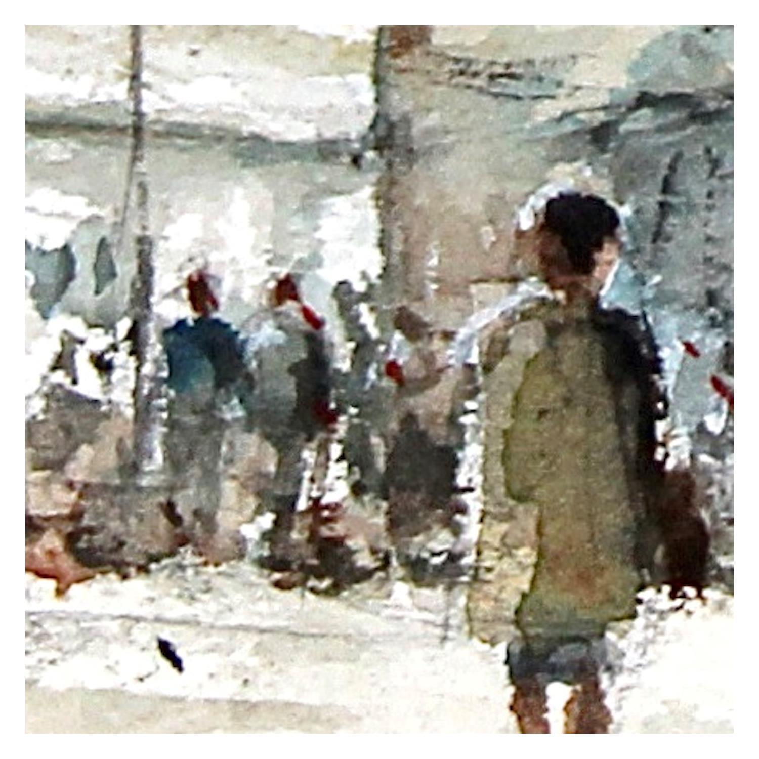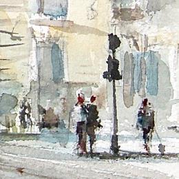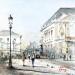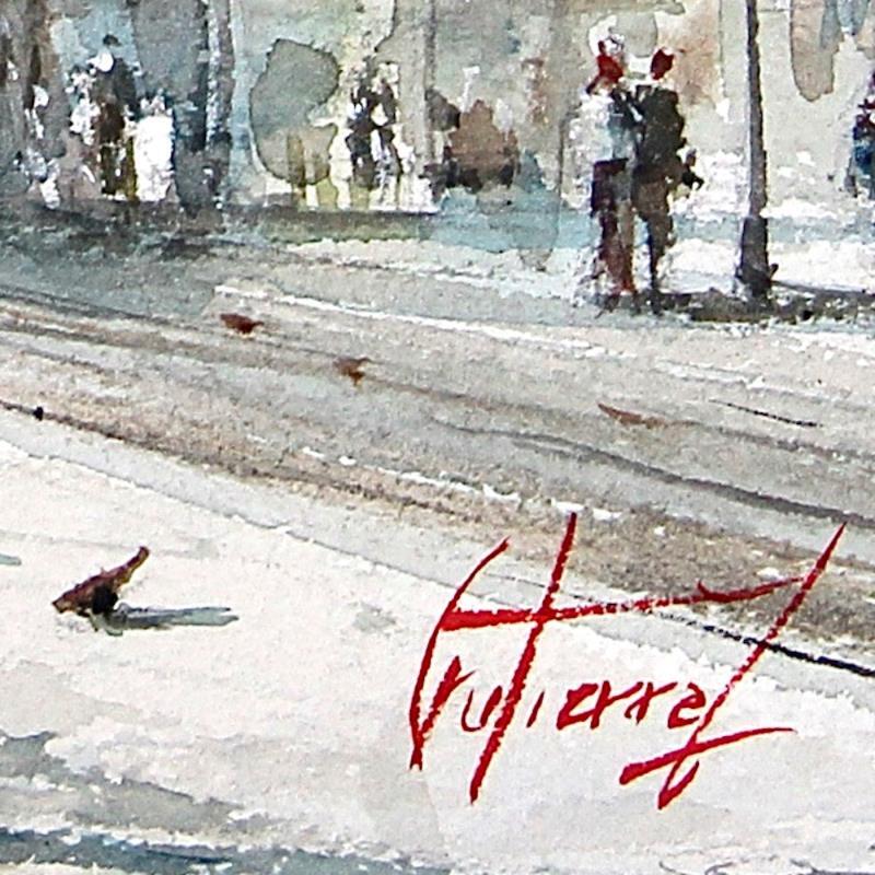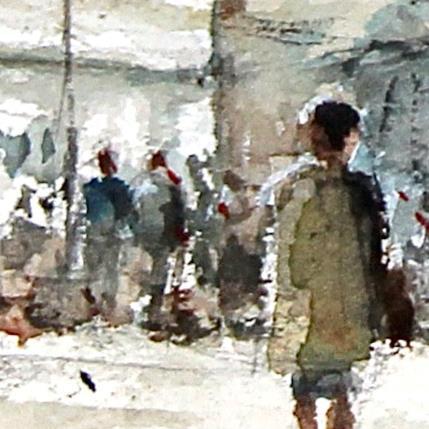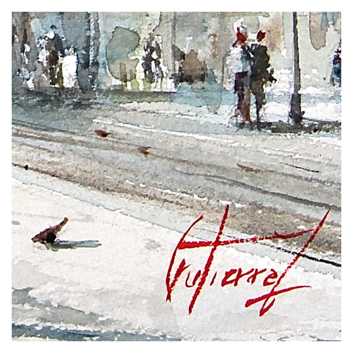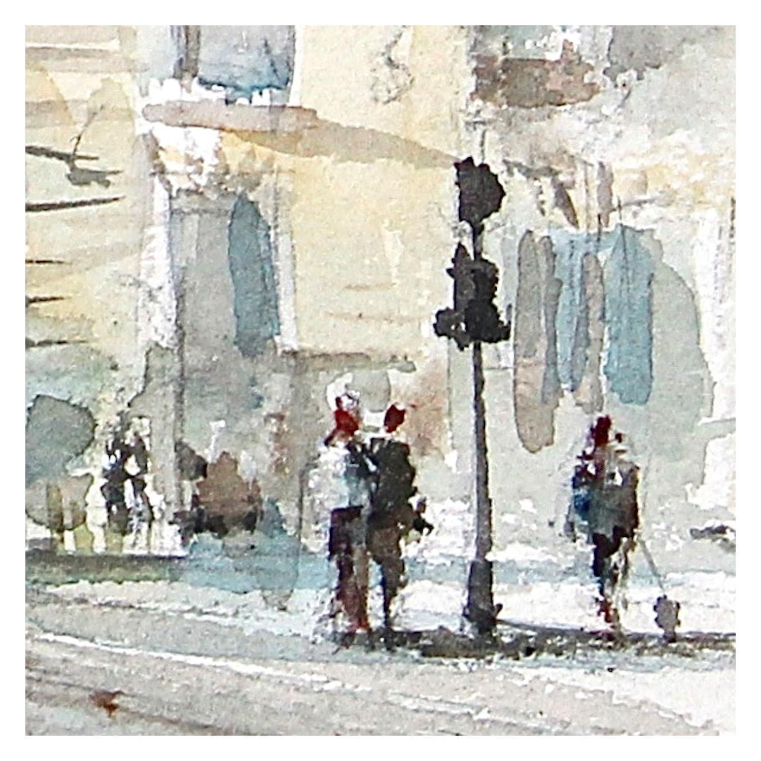 The artist used the Aquarelle technique to create this small-format Impressionist-style painting on the theme of Urban.